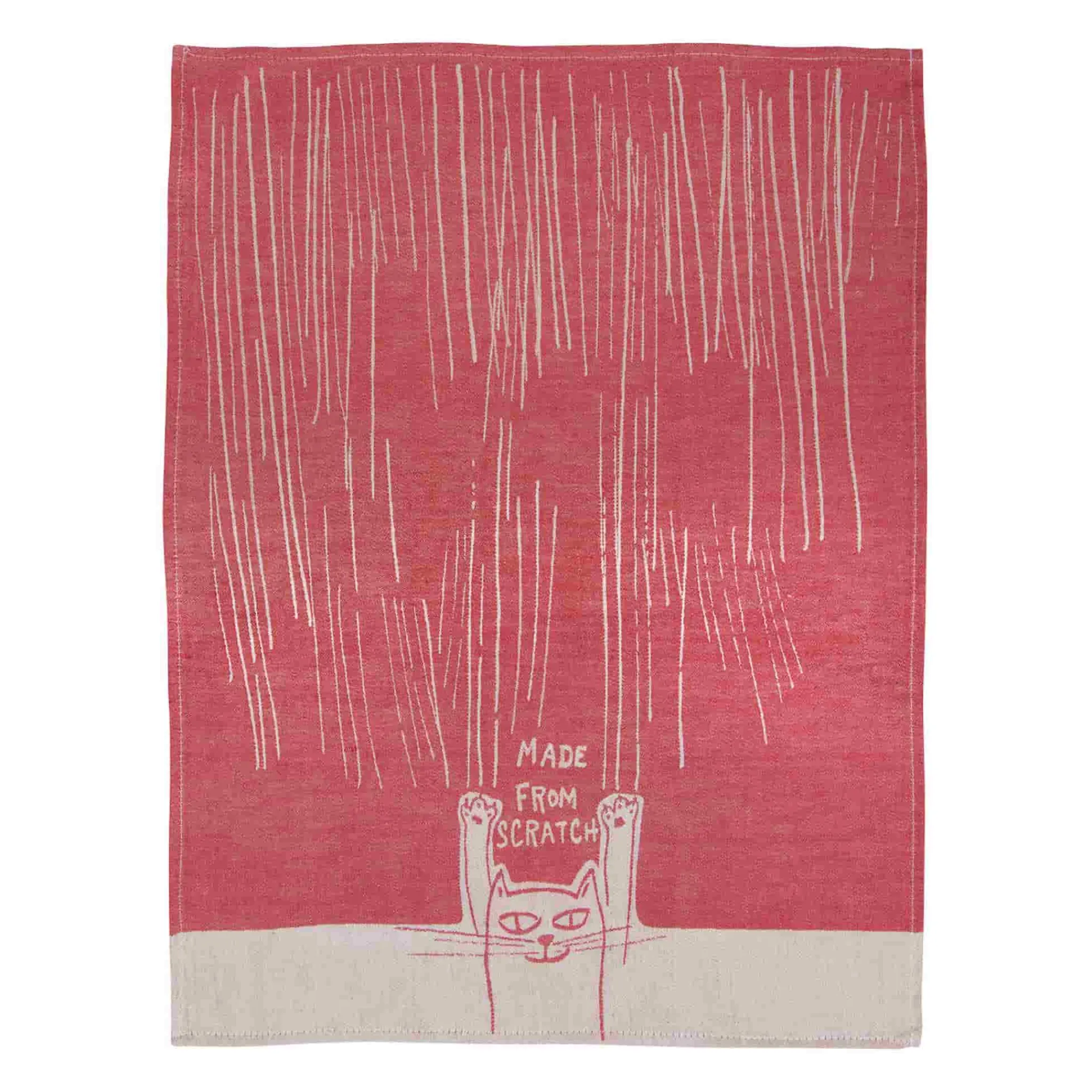 The Made From Scratch cotton tea towel is the perfect gift for cat and food lovers! This delightful apron features a foundational cooking principle combined with a cat and its scratch marks. Smile at a fun food themed pun every time you wash the dishes!