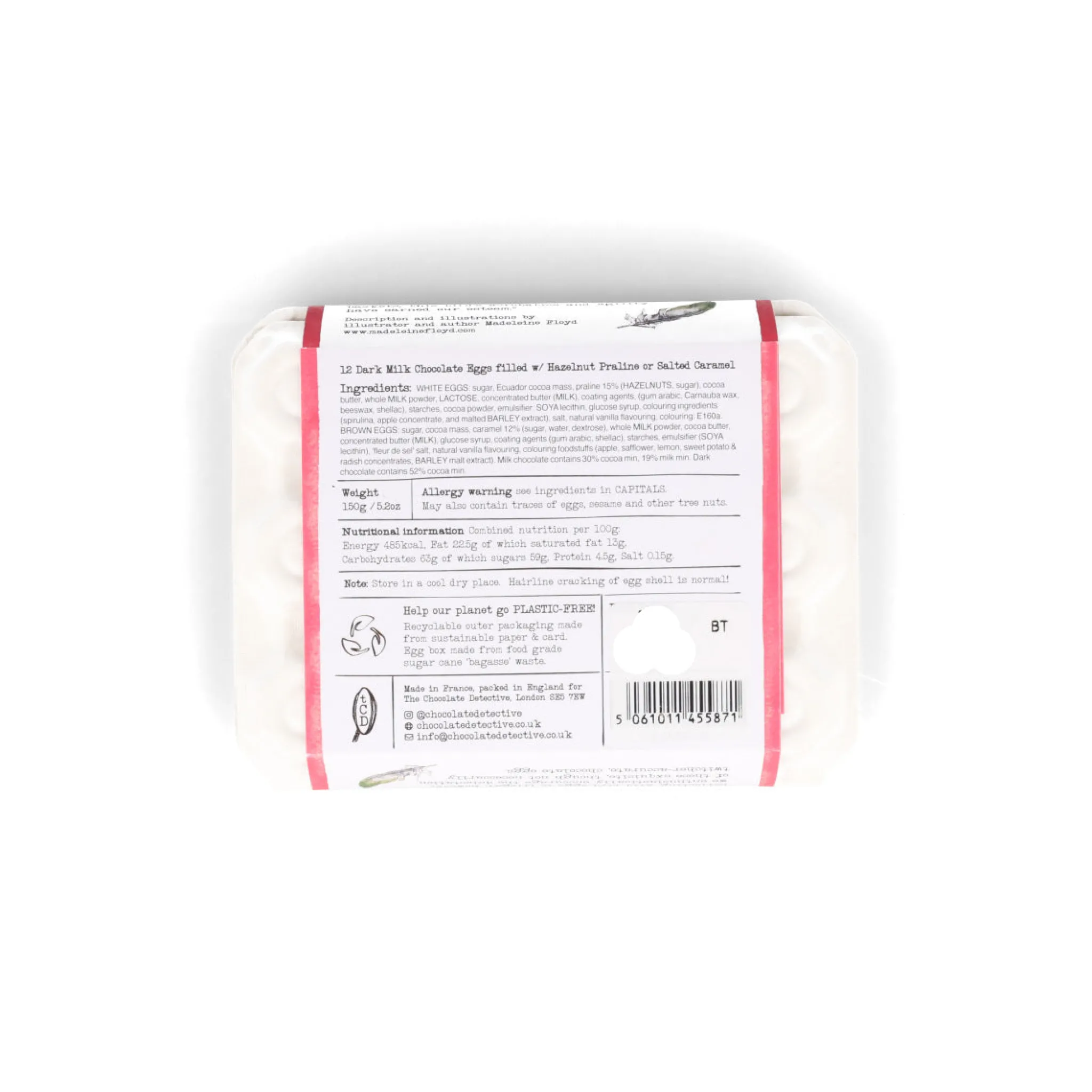 The eggs are made in France using bean-to-bar couverture. The ethically produced cocoa comes from a large farm in Ecuador.