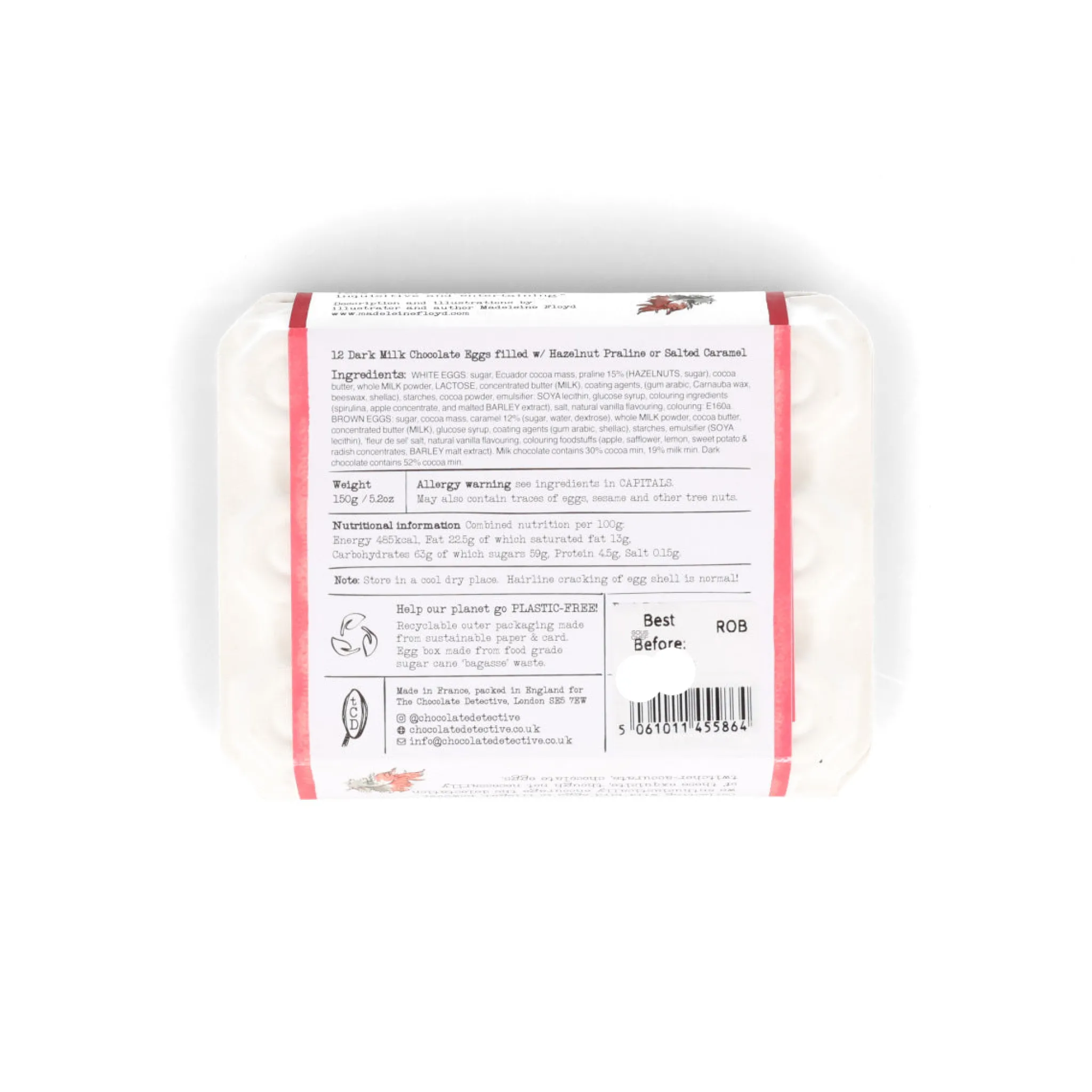 The eggs are made in France using bean-to-bar couverture. The ethically produced cocoa comes from a large farm in Ecuador.