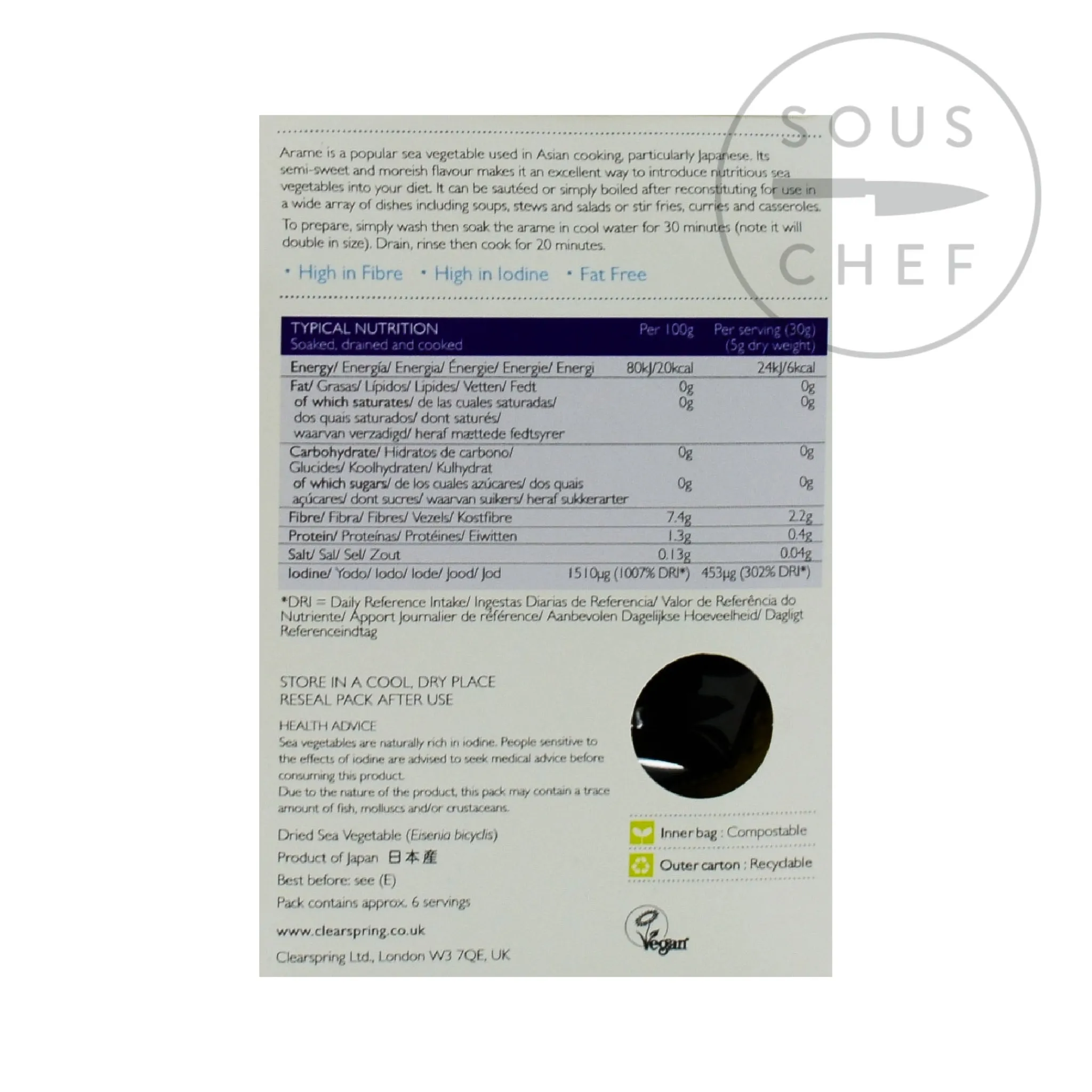 Product formulations and details may change. For the latest ingredients and allergen information always check product packaging prior to consumption. Ingredients: dried sea vegetable (Eisenia bicyclis). Due to nature of product this pack may contain a trace amount of fish, molluscs and/or crustaceans.