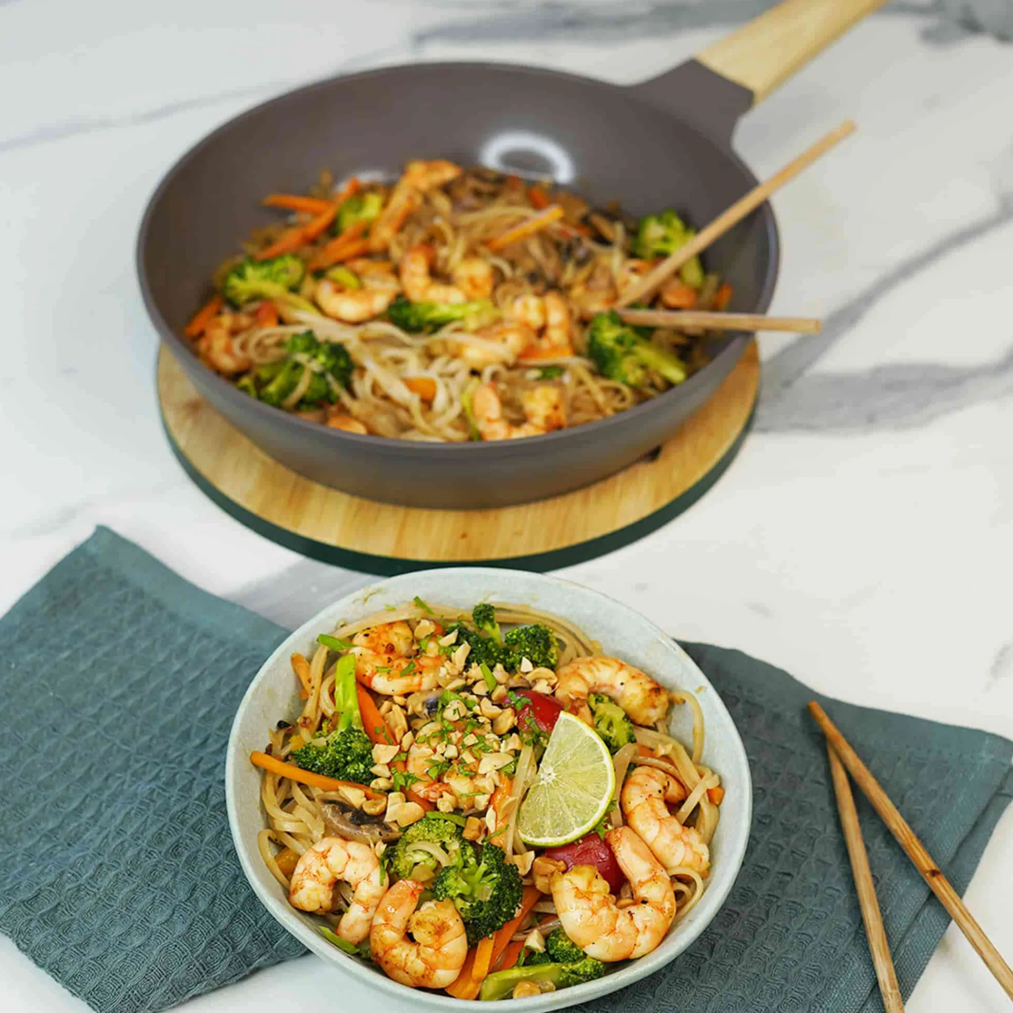 Cookut’s non-stick taupe frying pan is an eco-friendly piece of cookware for frying noodles, browning meat and simmering ragu. Made from natural materials, this versatile pan is lightweight, but sturdy enough for everyday use. A non-stick mineral coating lets you fry without the need for lots of fat. This coating also makes this pan easy to clean, and it won’t stain, however colourful the sauce you’re cooking is. The faux-wood polymer handle stays cool while you’re cooking – lift it from the hob without fear of burning yourself.