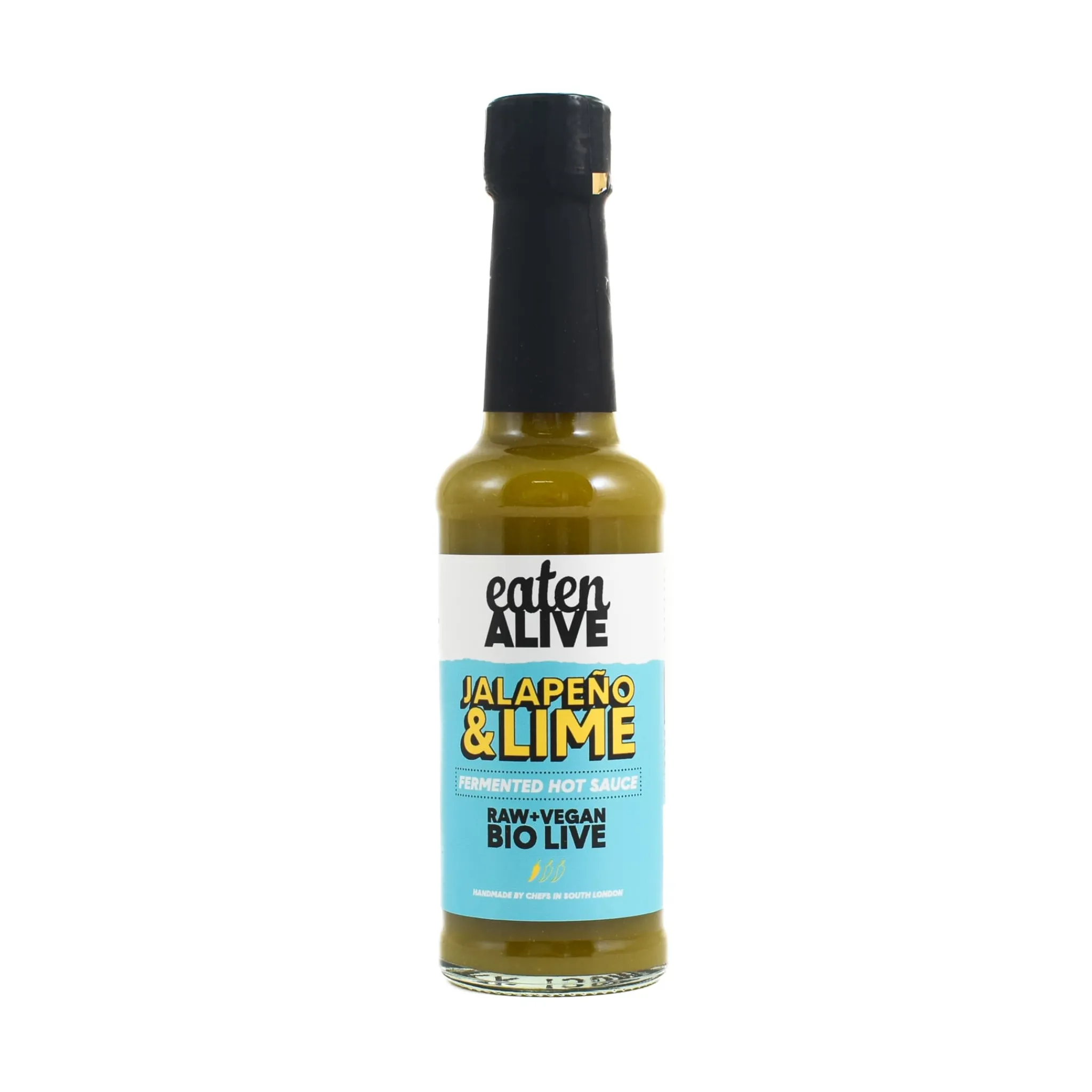 Eaten Alive jalapeño and lime hot sauce is 100% natural, vegan and bio-live.