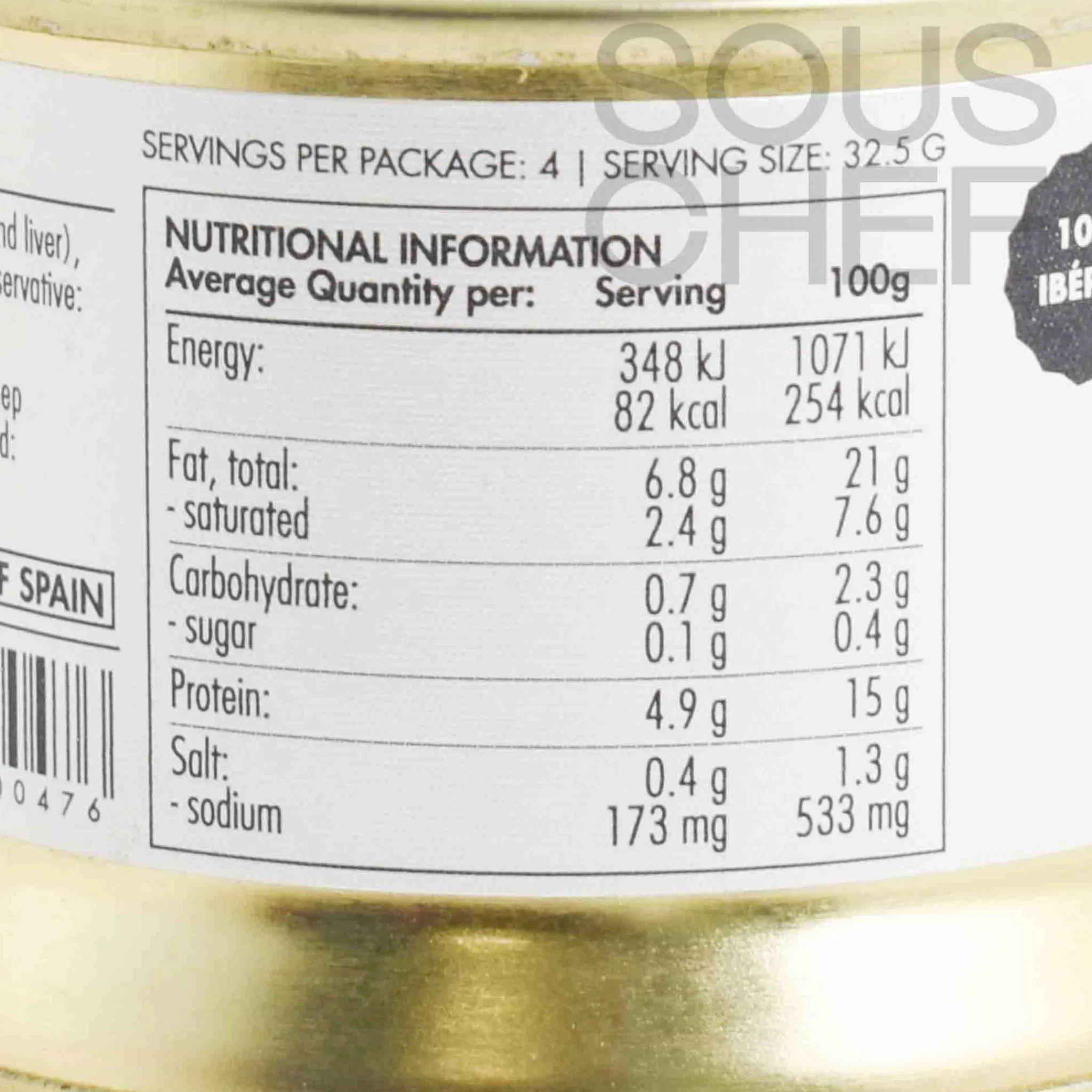Product formulations and details may change. For the latest ingredients and allergen information always check product packaging prior to consumption. Ingredients: Iberico pork meat 60% (ham, bacon & liver), cream (thickener: carageen), egg, salt, sugar, spices, preservative: sodium nitrite.