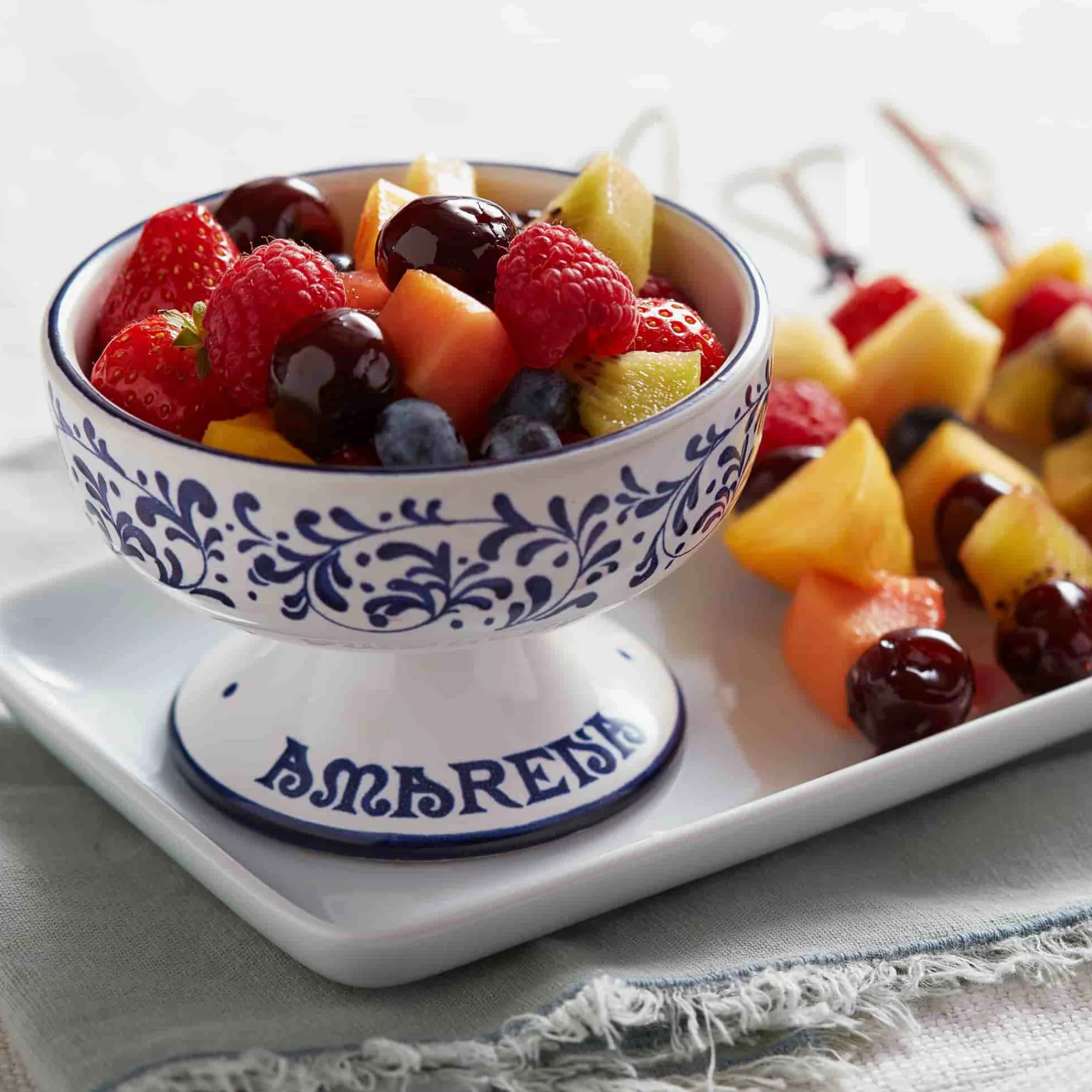 The Amarena is a variety of sour cherry that was developed by Gennaro Fabbri in 1869. His wife, Rachele, slowly cooked the cherries and semi-candied them. Gennaro liked them so much, that he bought a white-and-blue ceramic jar to thank her. Rachele then had the idea to sell the cherry syrup in the decorative jars, and in 1905 the Fabbri company was born.