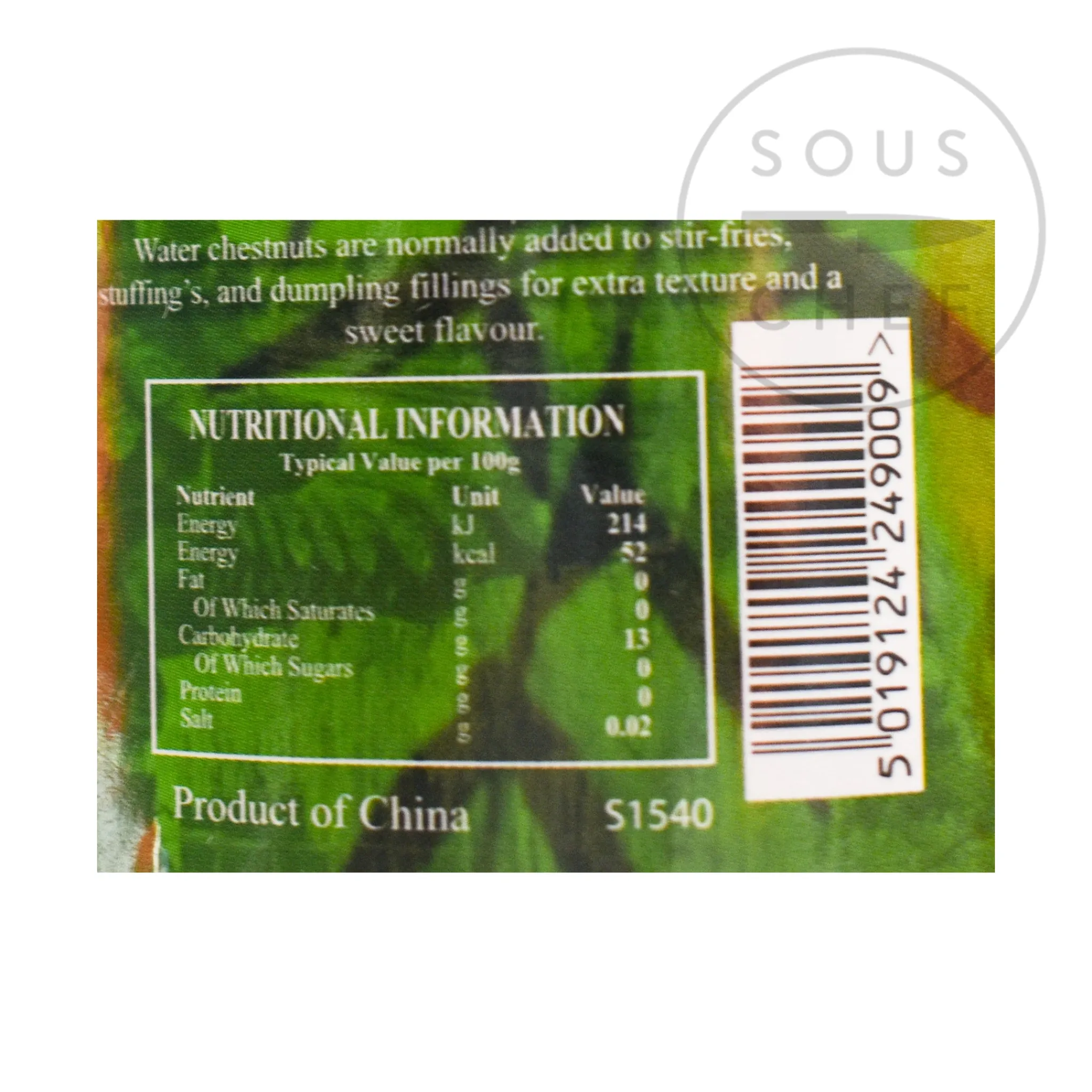Product formulations and details may change. For the latest ingredients and allergen information always check product packaging prior to consumption. Ingredients: Water chestnut, water.