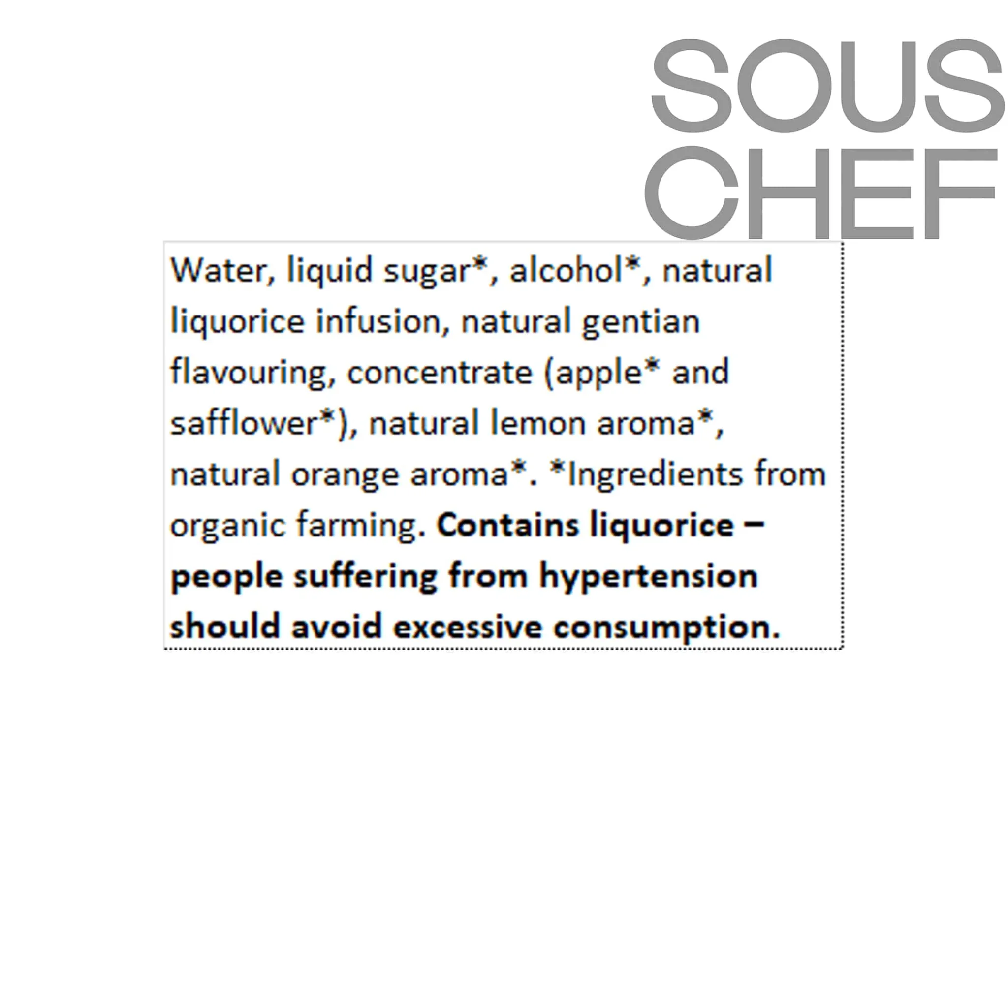 Product formulations and details may change. For the latest ingredients and allergen information always check product packaging prior to consumption. Ingredients: Water, liquid sugar*, alcohol*, natural gentian flavouring with other natural flavourings, concentrate (apple* and safflower).