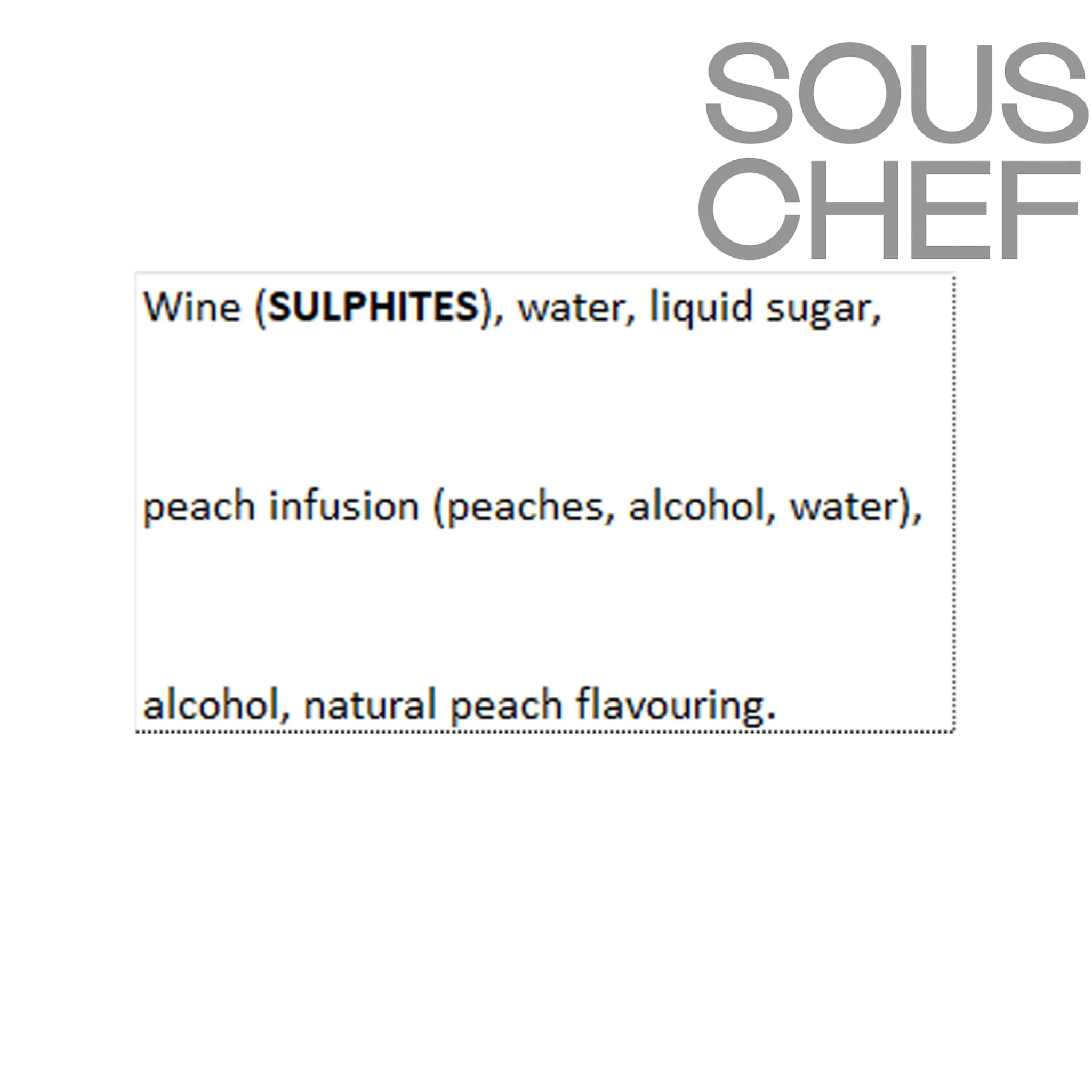Product formulations and details may change. For the latest ingredients and allergen information always check product packaging prior to consumption. Ingredients: Wine (sulphites), water, liquid sugar, peach infusion (peaches, alcohol, water), alcohol, natural peach flavouring.