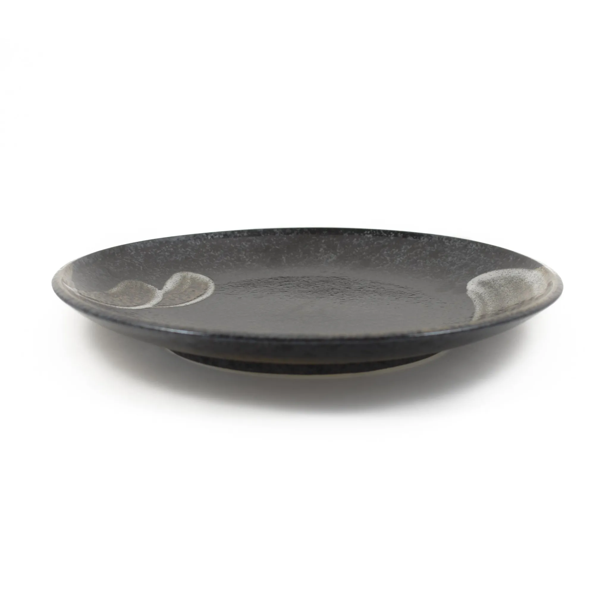 “Karasuba-iro” means glossy black in Japanese, and this glazed ceramic plate has a beautiful glossy black and grey speckled surface. Additional red-brown detailing and white sweeps add to the elegance of the design.