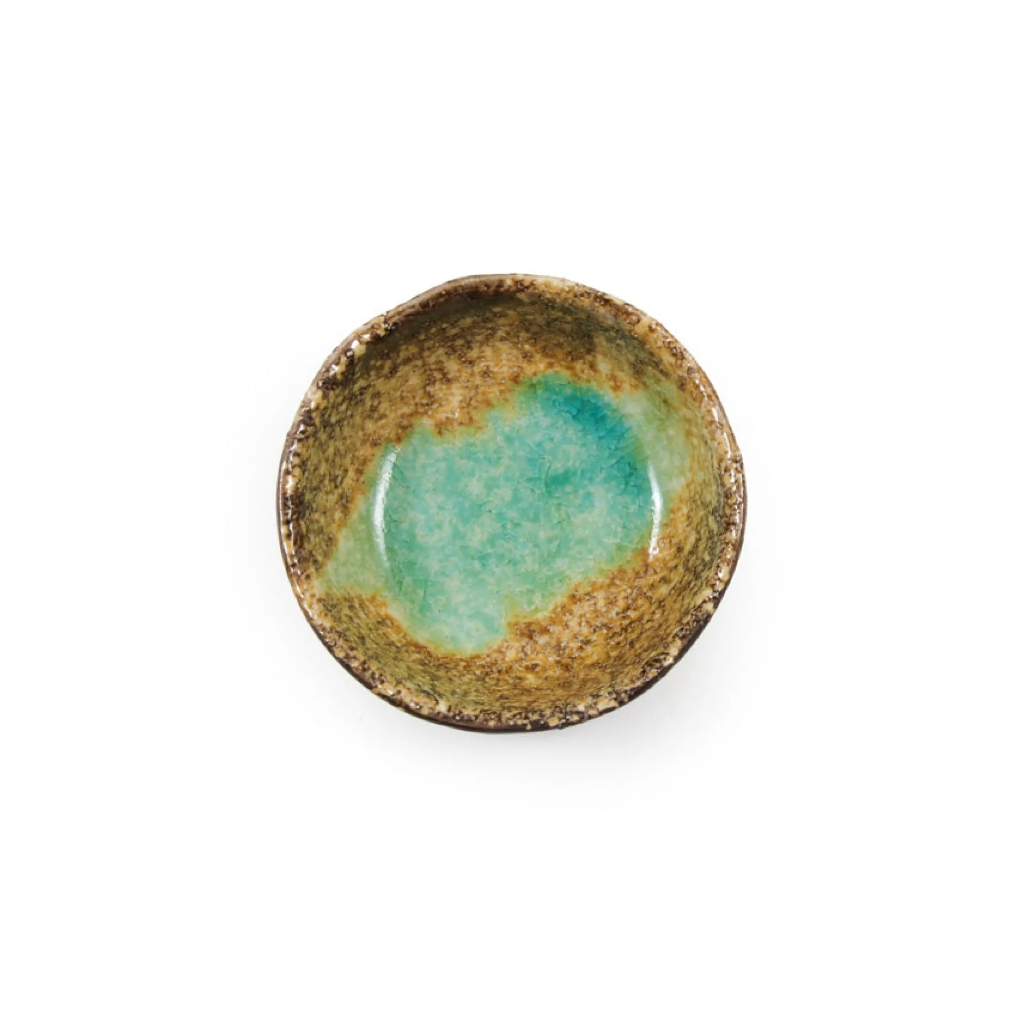 Use the midori soy sauce & pickle bowl to serve dipping sauces alongside sushi, tempura and dim sum. Or perhaps use the midori bowl to serve portions of Japanese pickles with rice and noodle dishes. The textured Japanese stoneware bowl features a crackle glaze base in light blue-green, surrounded by a sandy, speckled glaze – like a mini desert oasis.