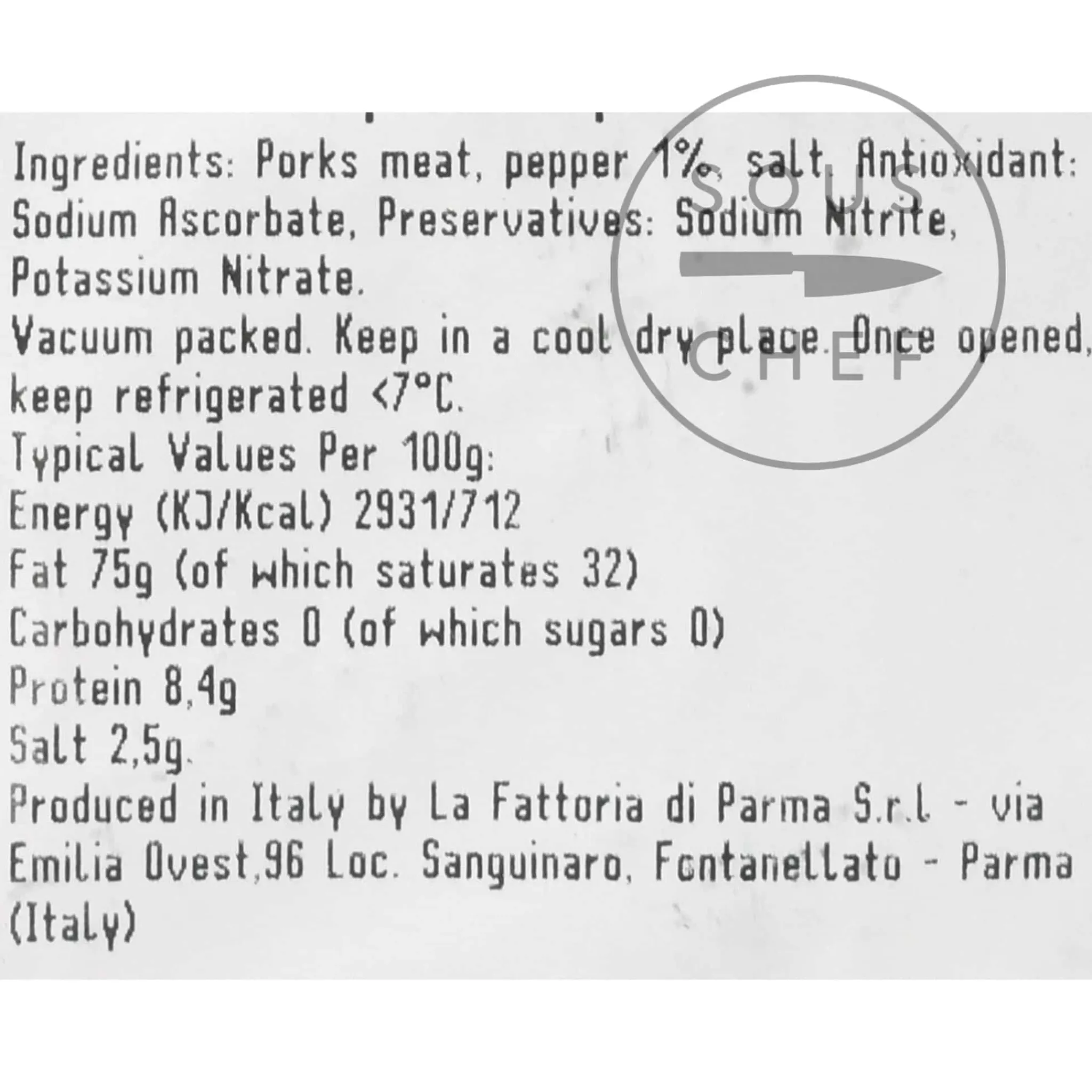 Product formulations and details may change. For the latest ingredients and allergen information always check product packaging prior to consumption. Ingredients: pork meat, pepper 1%, salt, antioxidant: sodium ascorbate, preservatives: sodium nitrite, potassium nitrate.