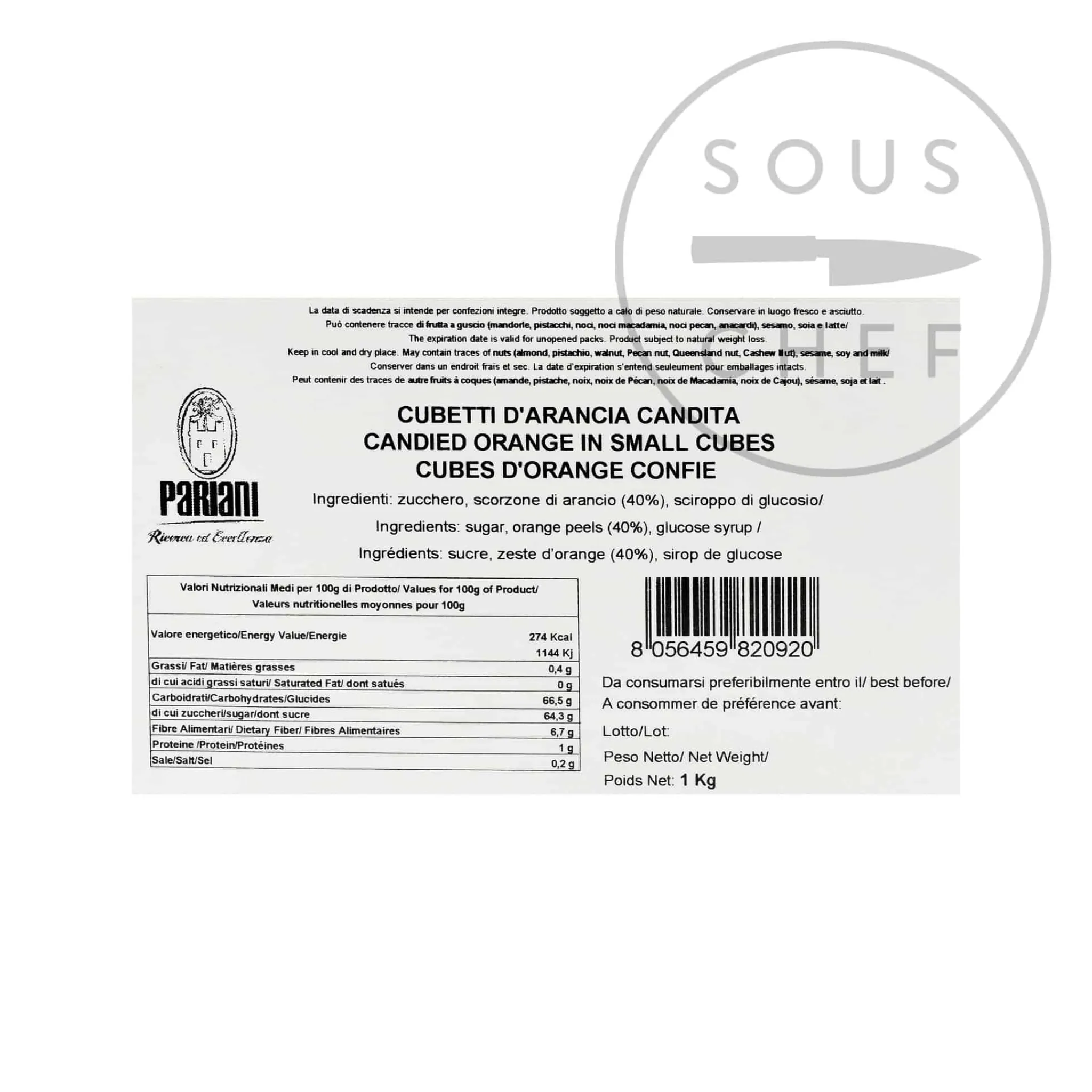 Pariani’s candied orange in small cubes is a sweet, aromatic alternative to fresh fruit when making cakes and ice creams. Pariani’s exceptional cold candying process leaves the natural flavours of the fruit unaltered, and also helps to prevent the fruit freezing at low temperatures – so the orange cubes stay lovely and soft even in ice cream.