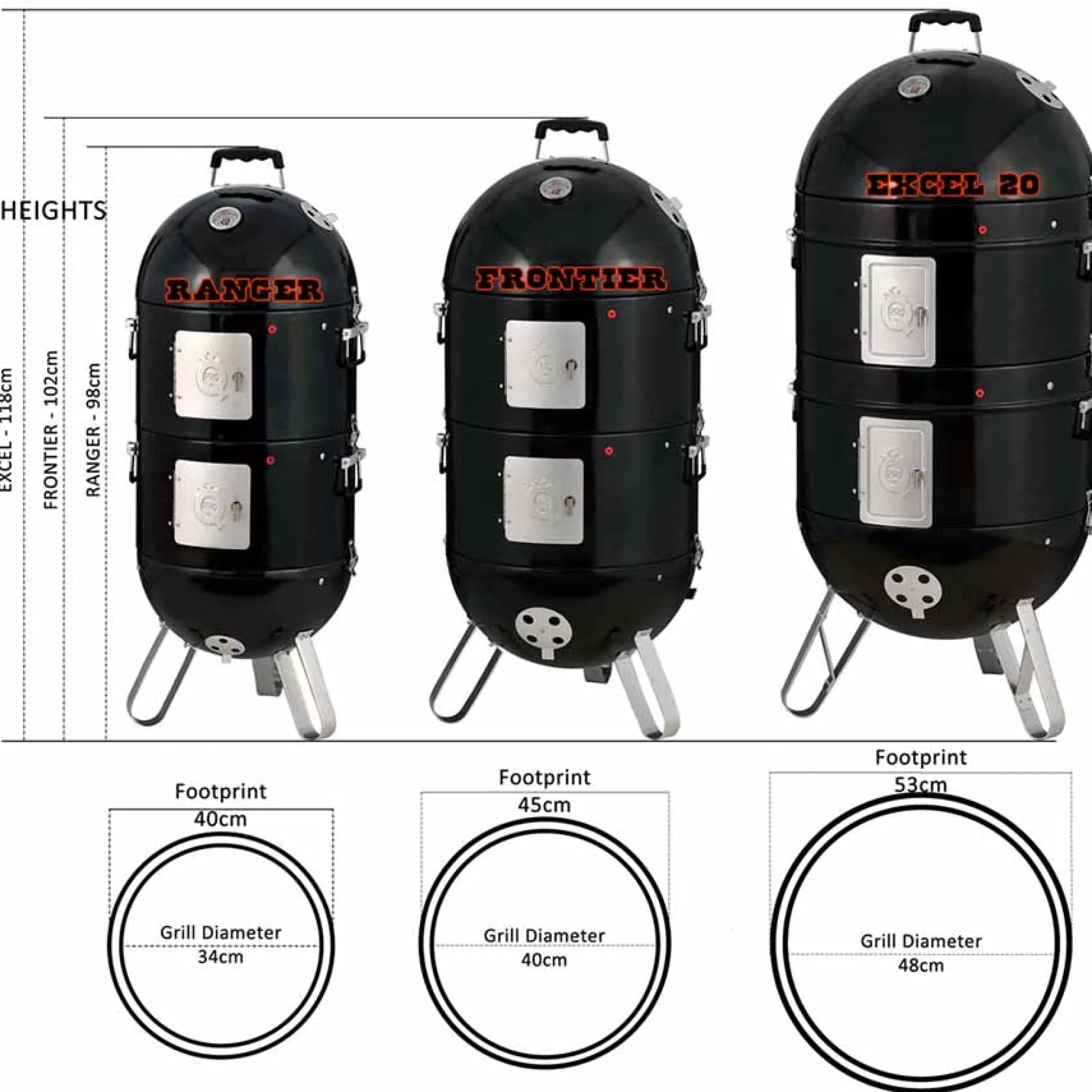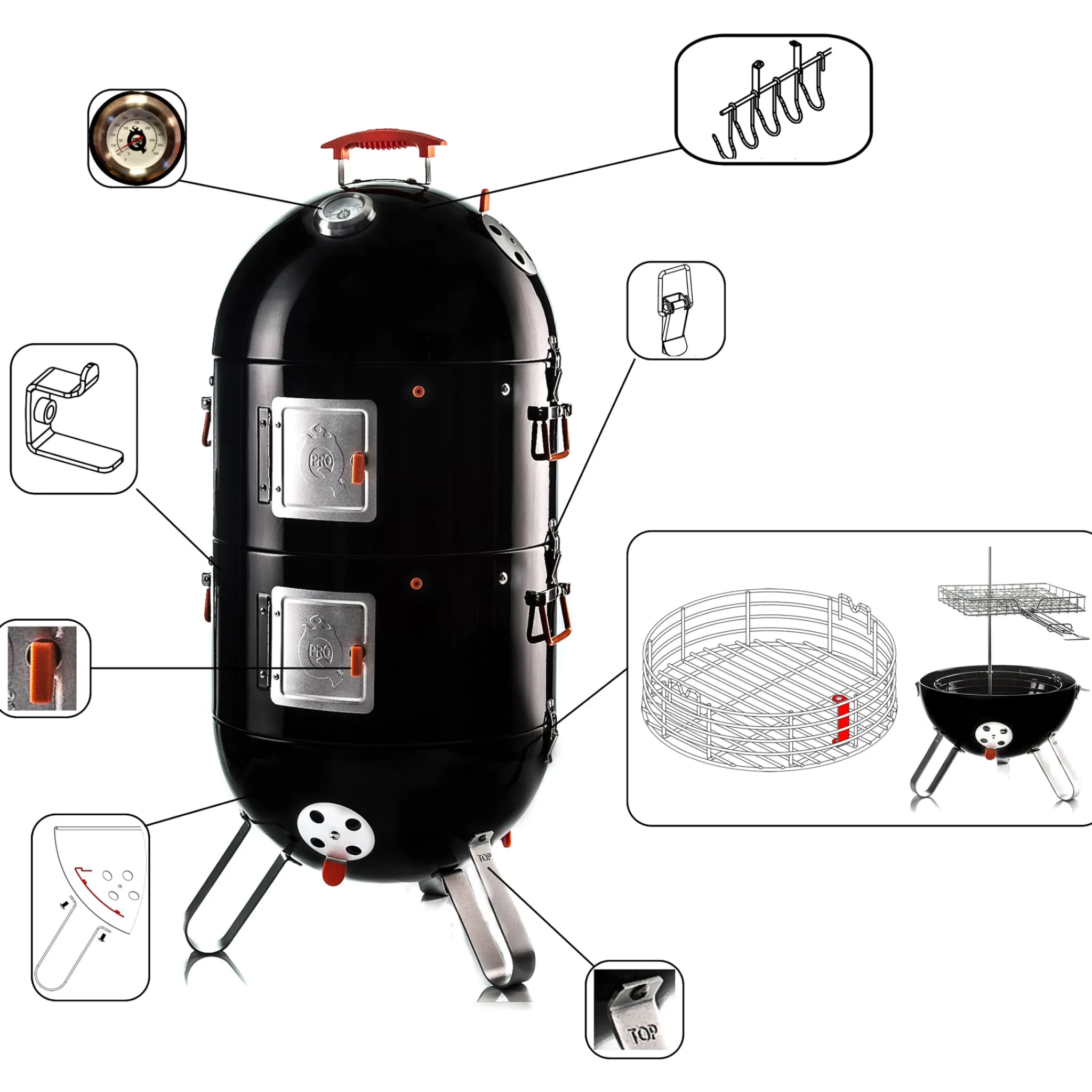 The ProQ Ranger Elite is well made and easy to use. Each compartment clips together, providing great stability, and making it easy to move. There is a temperature gauge at the top, four air vents, and eyelets at each level for maximum control throughout the cooking process. With a 35lb cooking capacity, you still have room to cook for a good number of guests – even hot smoking a few chickens at once!