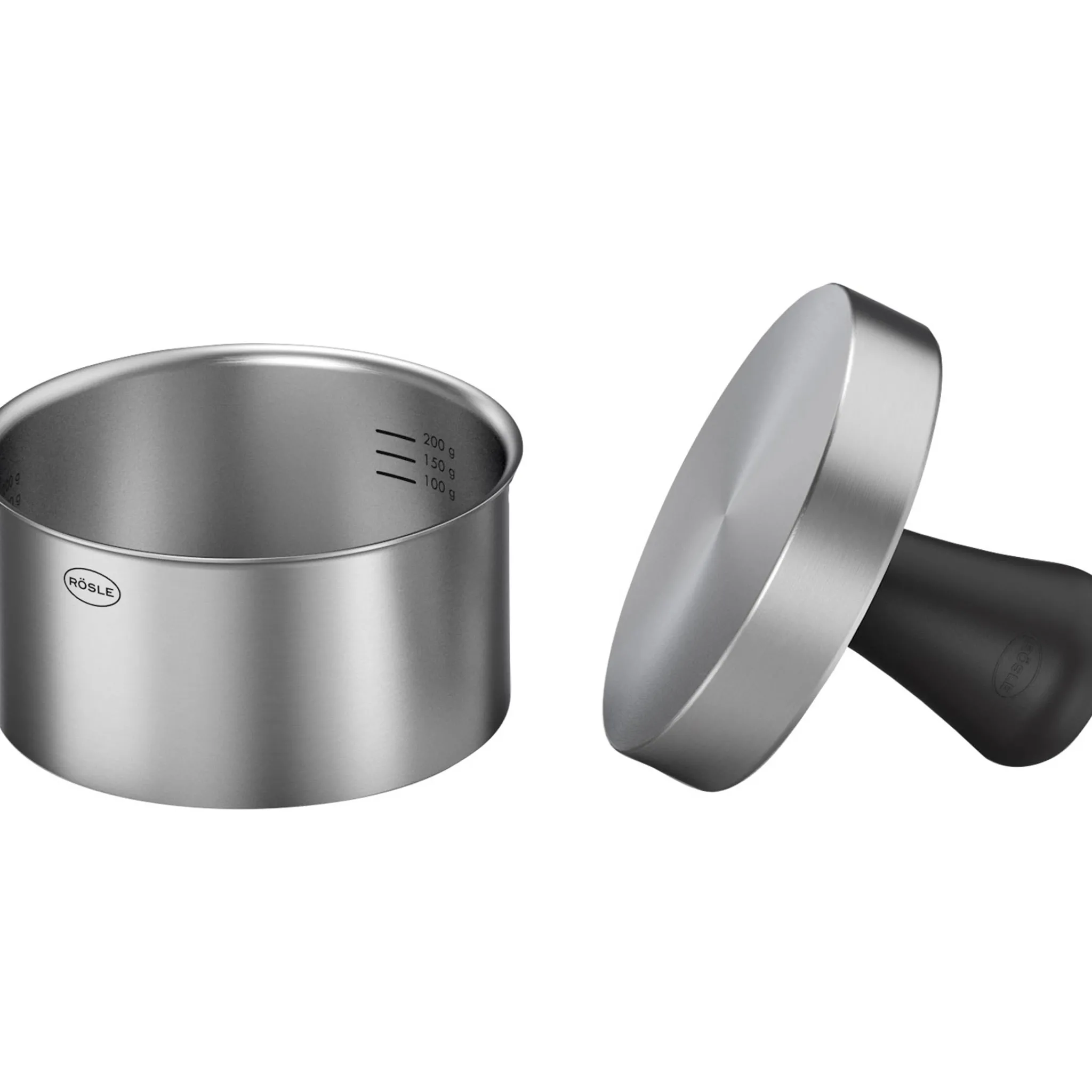 Use Rosle’s burger press pro to make perfectly formed patties for the ultimate BBQ feast. The stainless steel ring lets you form round burgers, while the weighted stamp presses down to flatten the mince.