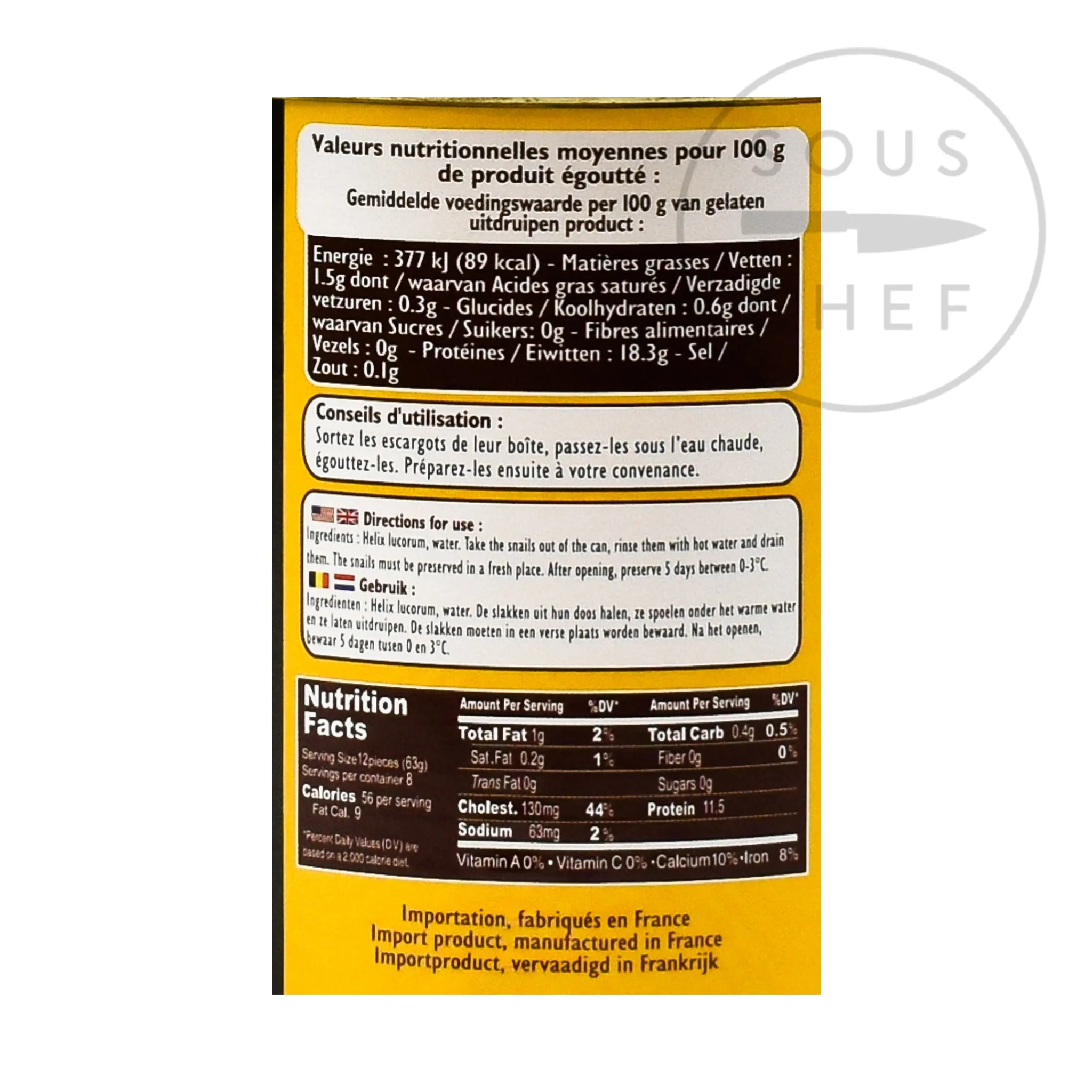 Product formulations and details may change. For the latest ingredients and allergen information always check product packaging prior to consumption. Ingredients: snails (Helix lucorum) (molluscs), water. Allergens are listed in bold.