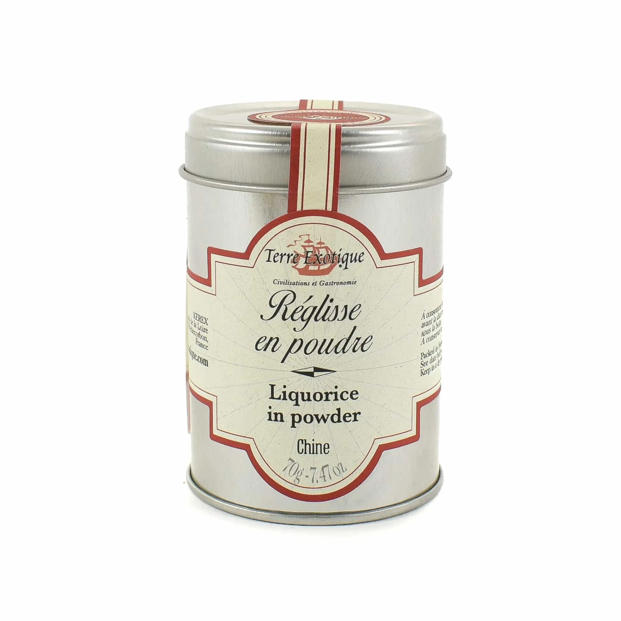 Terre Exotique’s liquorice powder is a pungent, sharp and smooth spice for use in both sweet and savoury dishes. The powder comes from the roots of the Glycyrrhiza glabra plant – once cut into strips, the roots are washed, dried, then ground into powder form. This powder is a key ingredient in Chinese five spice, and with it’s aniseed flavours, it’s wonderful for curries and slow-braised dishes.