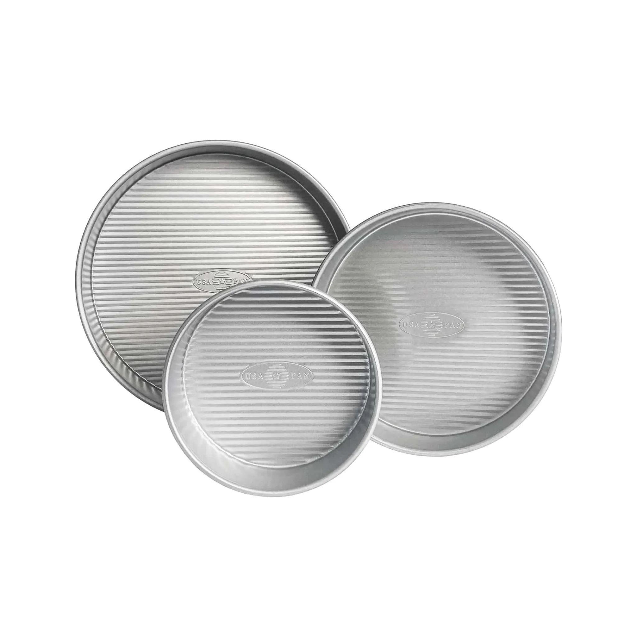 Bake like a pro with USA PAN’s 3-piece cake pan set. It includes 15cm, 20cm and 25cm round cake pans made from durable aluminised steel.