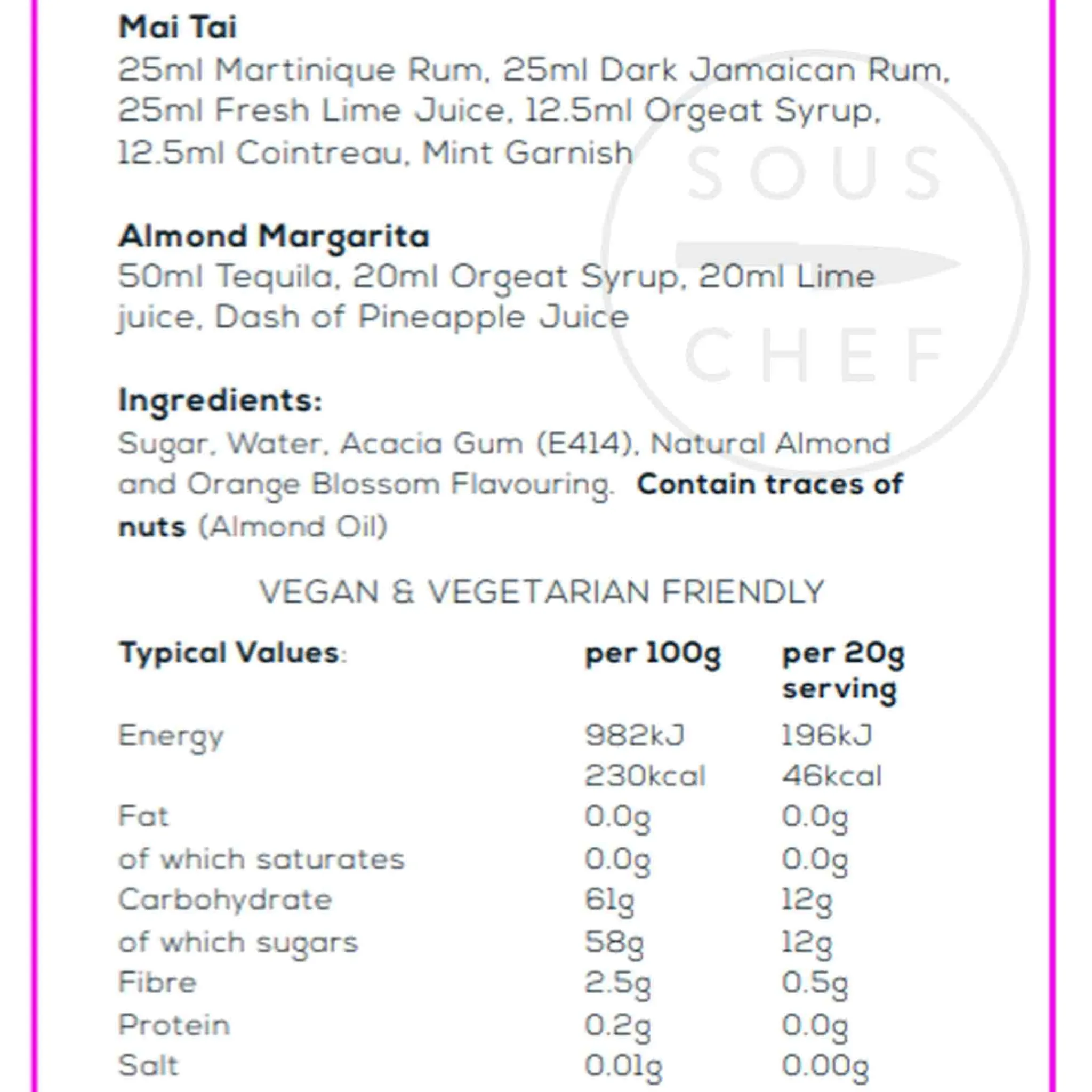 Product formulations and details may change. For the latest ingredients and allergen information always check product packaging prior to consumption. Ingredients: Sugar, water, acacia gum (E414), natural almond flavouring, contains traces of nuts (almond oil)