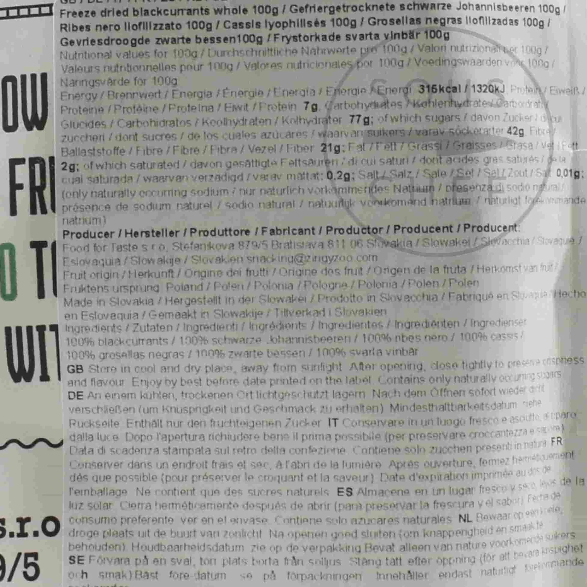 ZingyZoo’s freeze dried blackcurrants are sweet and sour with a bright berry flavour. They’re a delicious alternative to sugary snacks and ideal for eating on the go. You can add dried blackcurrants to porridge or honey-drizzled yoghurt for a healthy breakfast or use them when baking muffins, scones and fruit cakes.