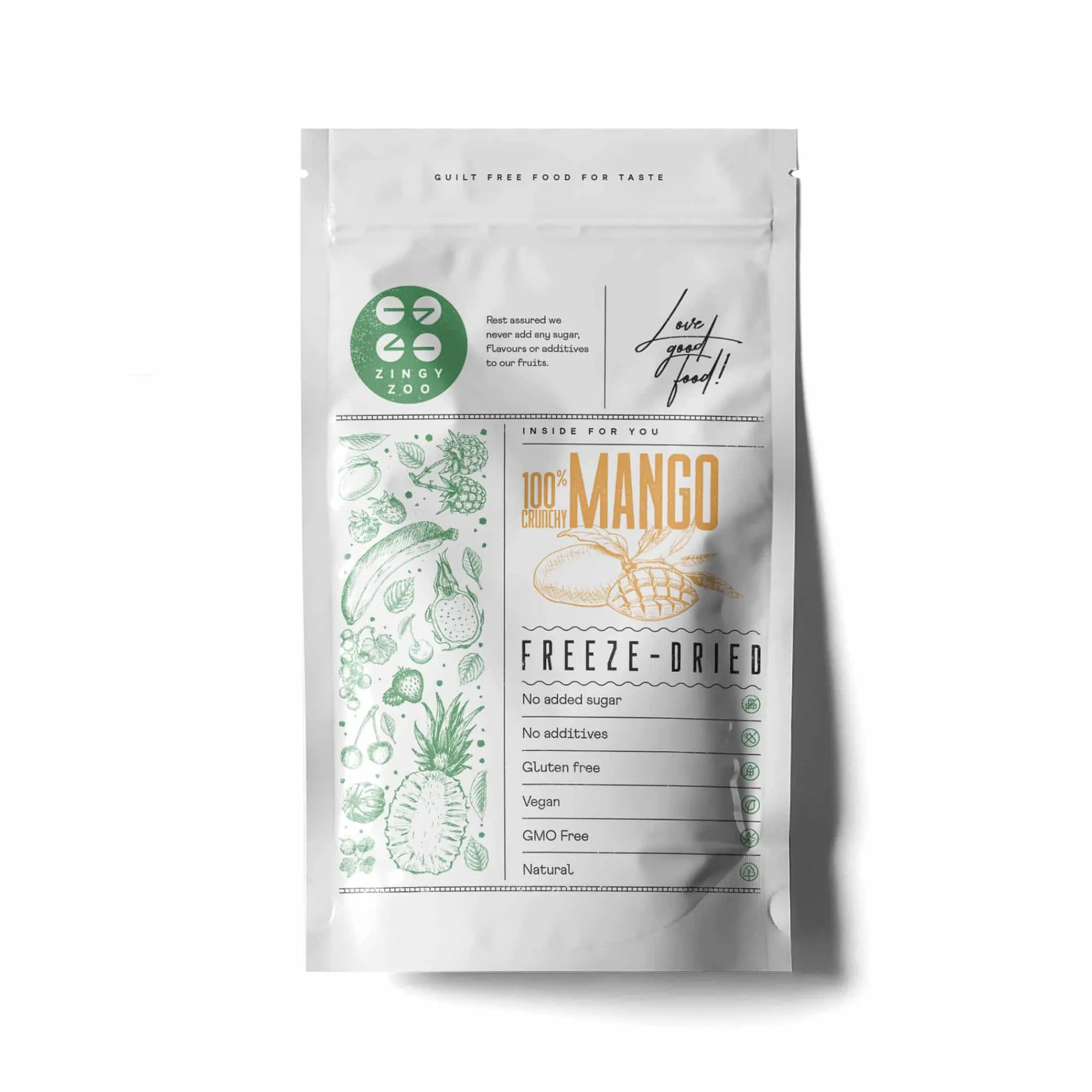 These freeze dried mango pieces from ZingyZoo are a delicious tropical snack, packed with the sweet flavour of mango. Made with no additives, these mango pieces are freeze-dried under a vacuum. This not only preserves the nutritional content but the intensity of flavour and vibrant orange colour.