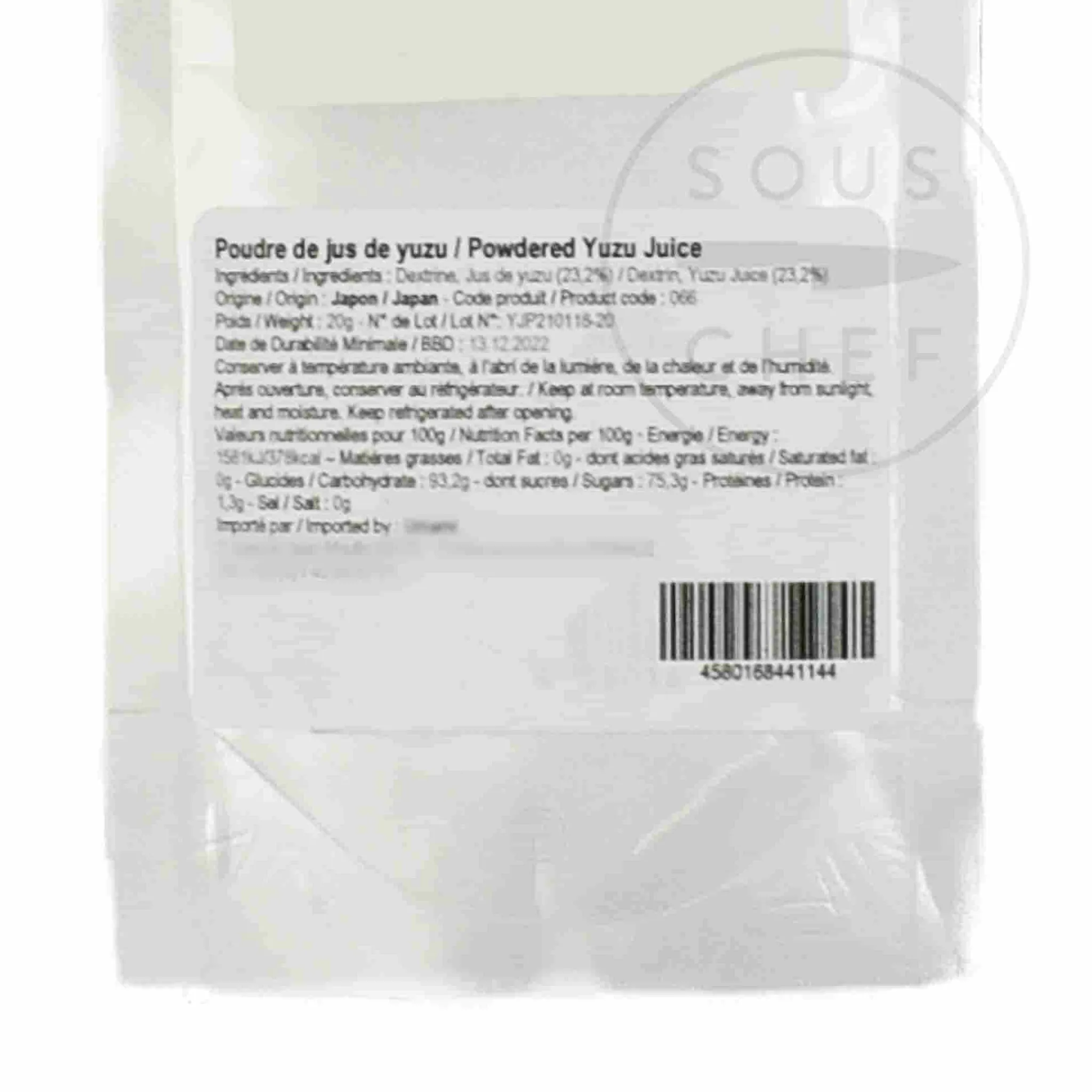 Yuzu juice powder gives a citrus zing to your shellfish, sorbets and chocolate desserts. Yuzu are small Japanese citrus fruits, with a similar flavour to mandarin and lime. This powder gives you the bright taste of yuzu without any bitterness.