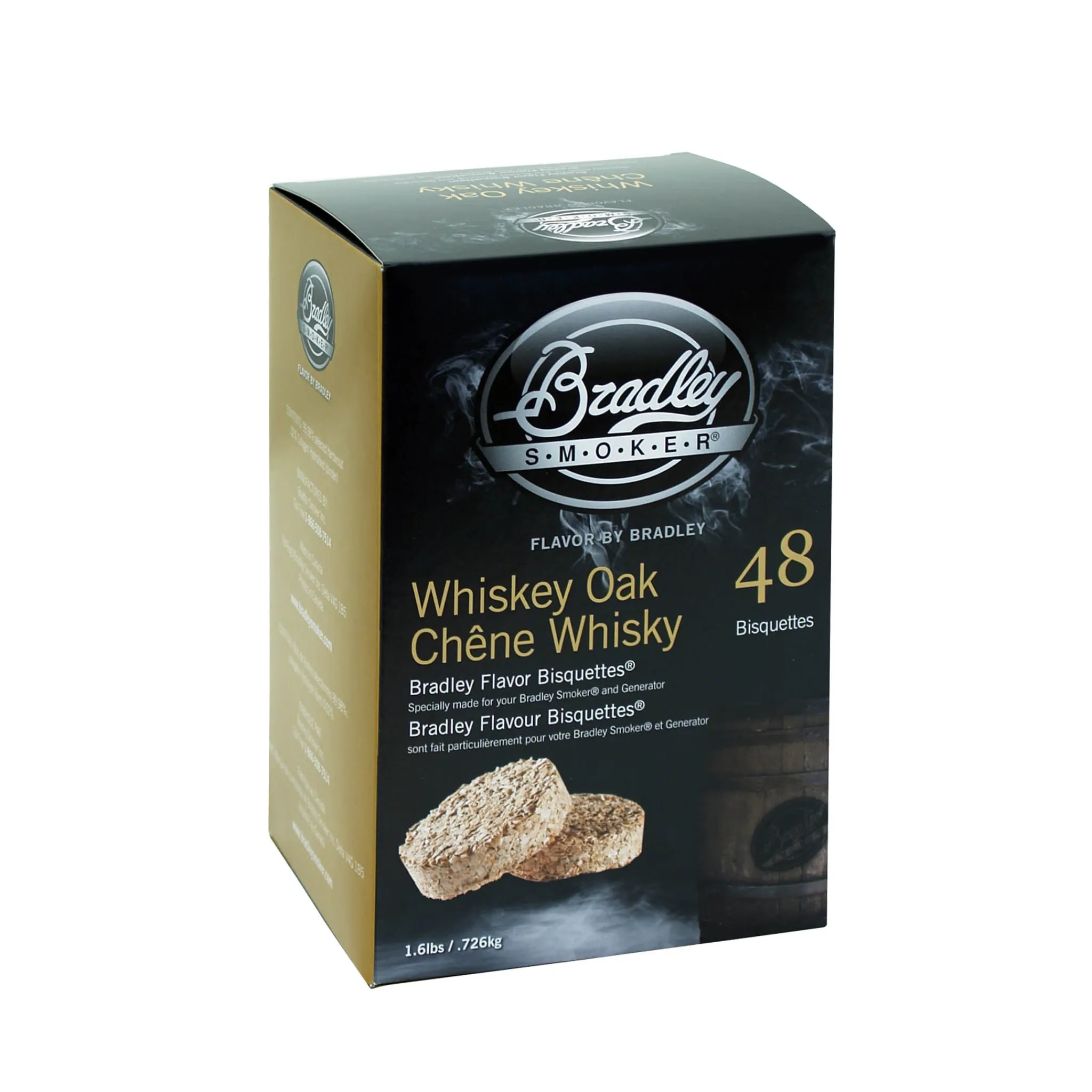 Thes whiskey oak bisquettes will give your smoked food a strong, rich flavour. The bisquettes are made from oak whiskey barrels, so have a brilliantly evocative pungence. Use it in your Bradley smoker for best results.