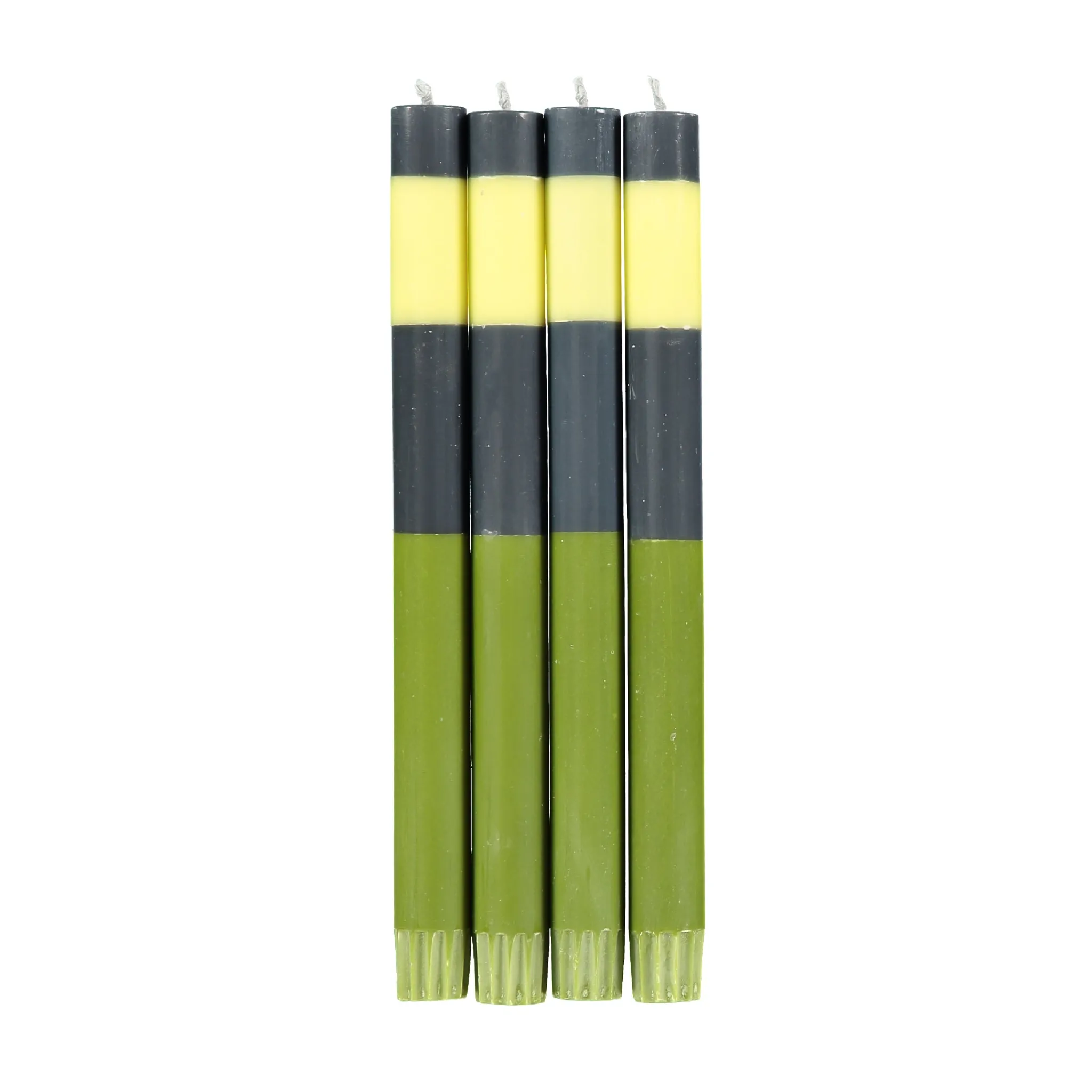 These striped colour block dinner candles bring rich earthy tones to your kitchen. In shades of olive, indigo and jasmine, these candles have a simple design with bold bands of colour. They offer beautiful complementary tones of the British Colour Standard’s spectrum of 1930s shades.