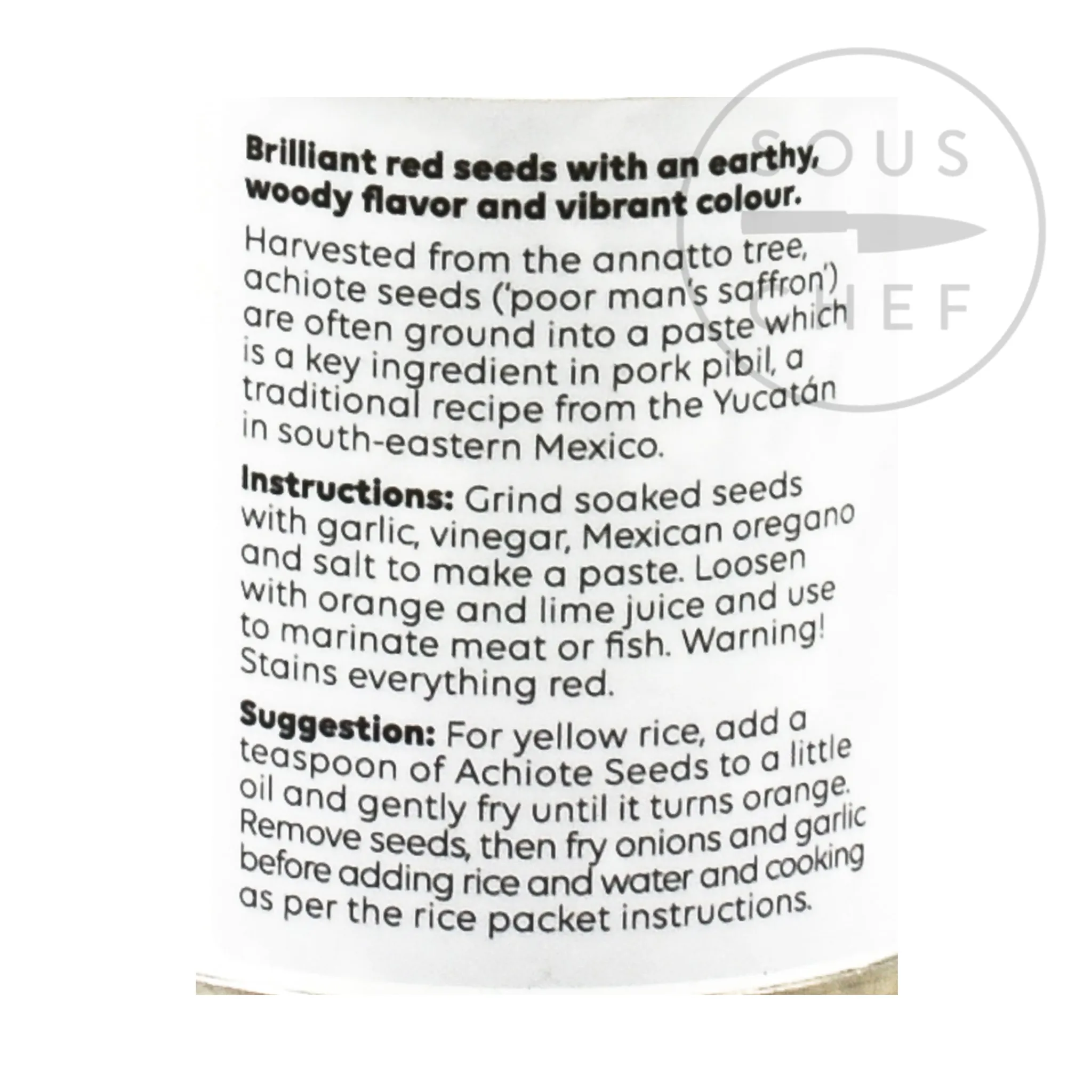 Product formulations and details may change. For the latest ingredients and allergen information always check product packaging prior to consumption. Ingredients: achiote seeds. May contain traces of sesame and almonds. Allergens are listed in bold.