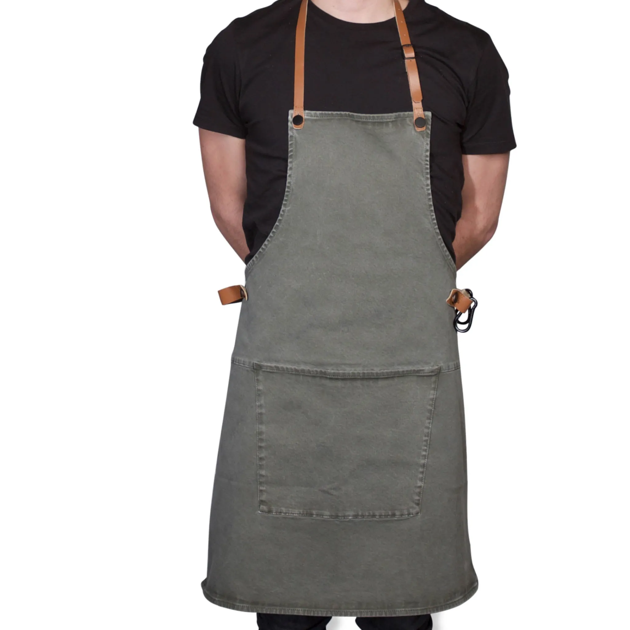 The Dutchdeluxes canvas BBQ apron in grey-green keeps you and your clothes looking great while you take care of the barbecue. The stylish canvas apron keeps your clothes safe from ash, sparks and spitting fat, both outside at the barbecue and in the kitchen.