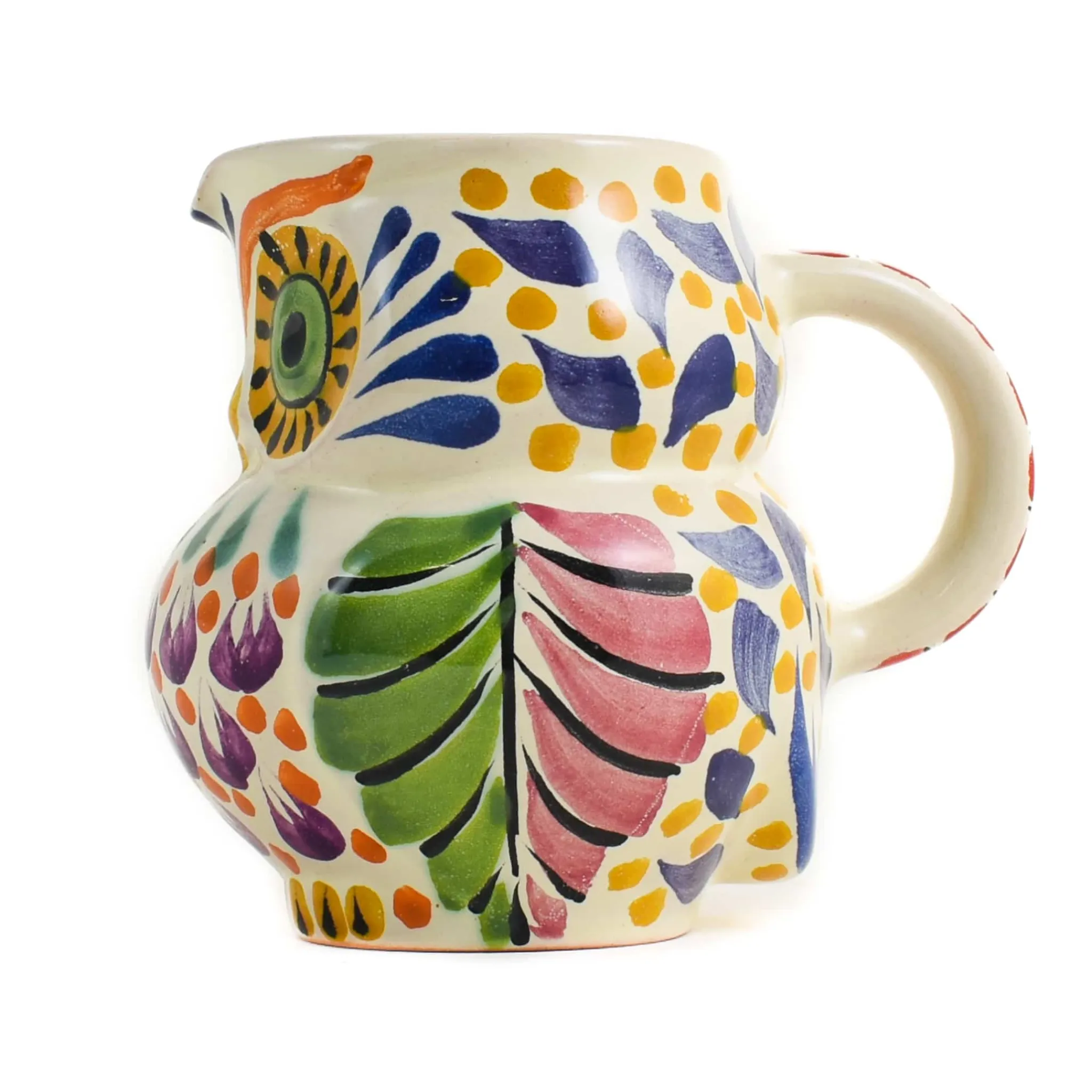 Brighten up your breakfast table with this Mexican milk jug. Shaped like an owl, it’s hand-painted in bold shades of blue, green and orange.
