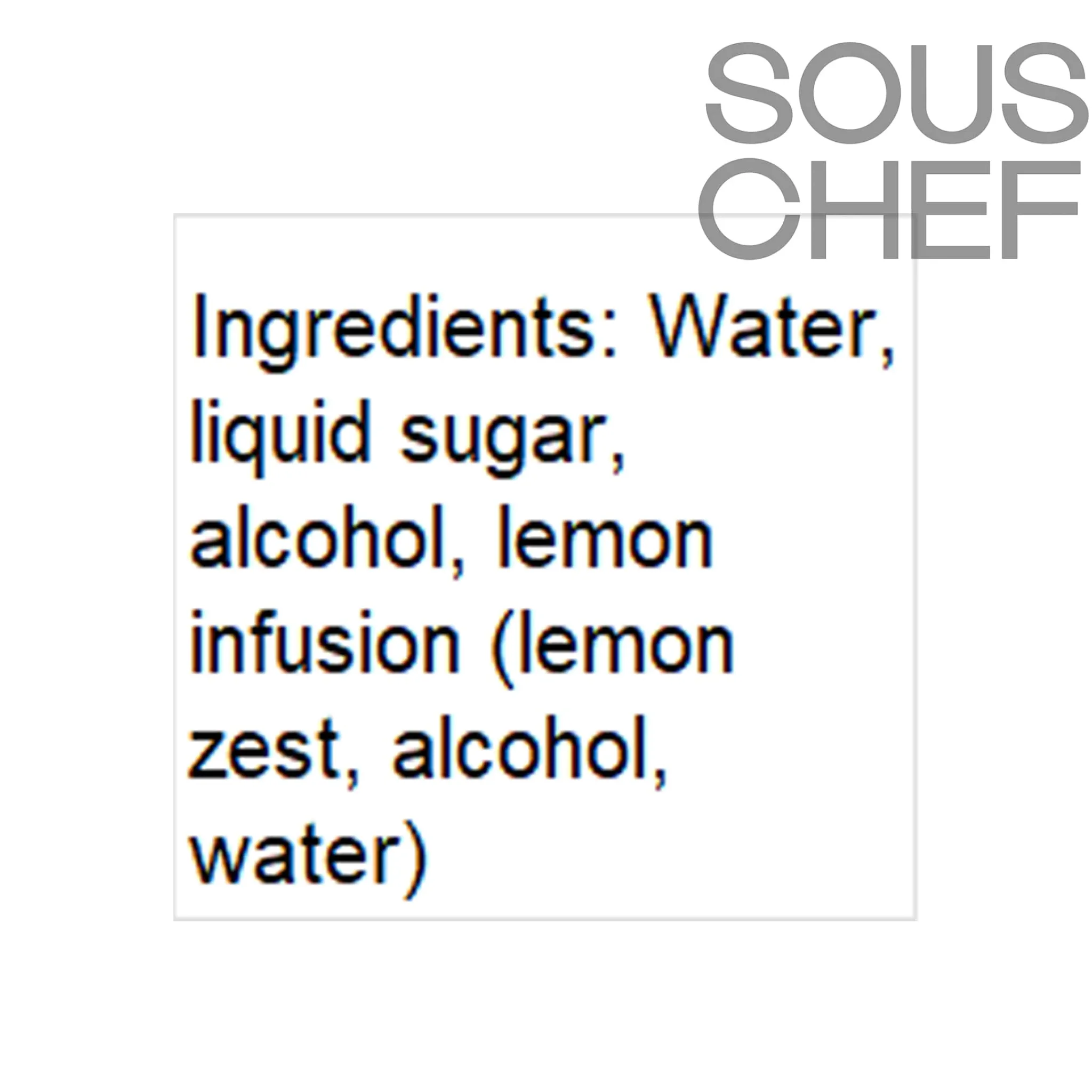 Product formulations and details may change. For the latest ingredients and allergen information always check product packaging prior to consumption. Ingredients: Water, liquid sugar, alcohol, lemon infusion (lemon zest, alcohol, water).