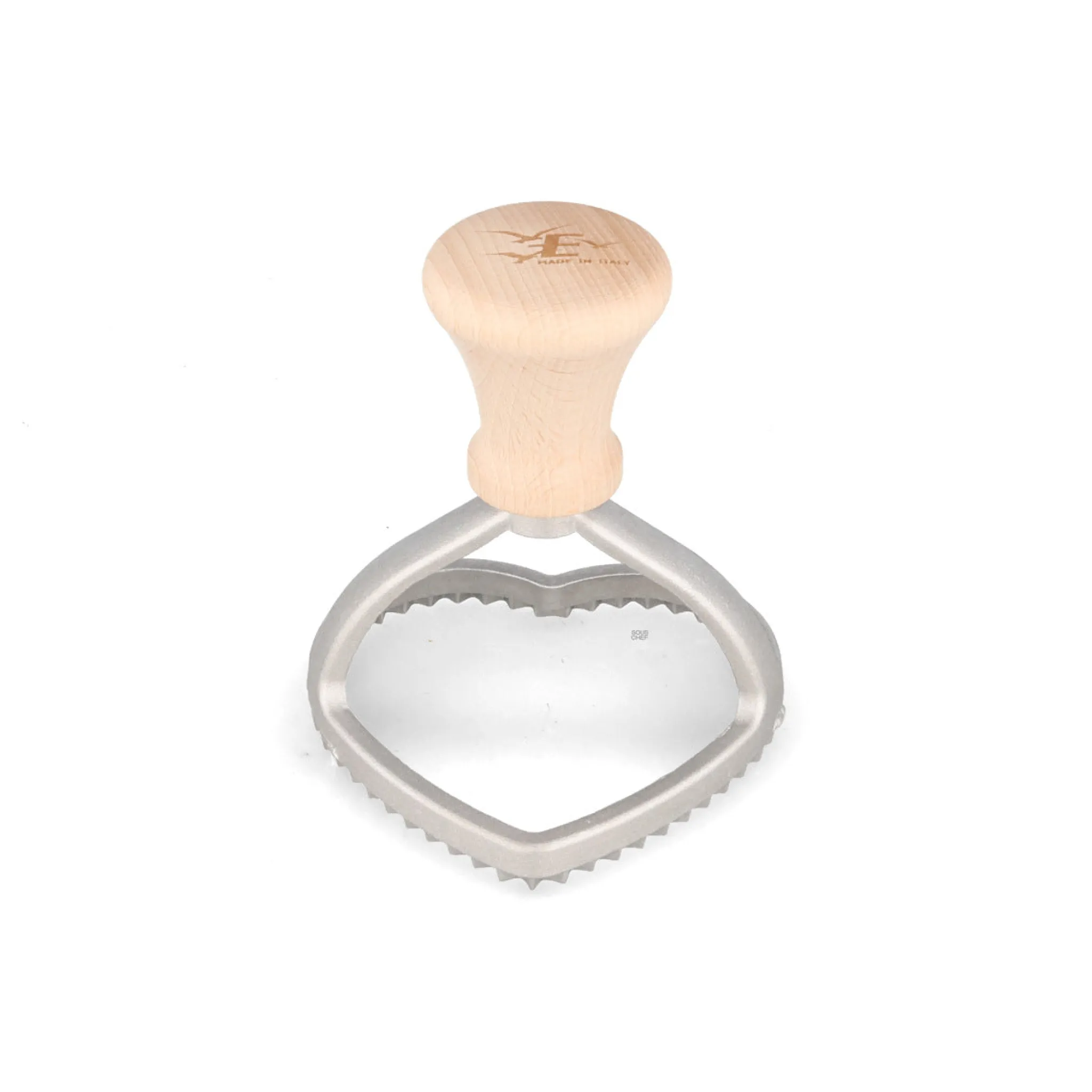 Cut handmade ravioli with this heart-shaped stamp. Perfect for Valentine’s Day or birthdays, especially with a little beetroot juice added to the flour and egg pasta mix for pink pasta hearts. It has a food-safe aluminium body and a beautiful beachwood handle.
