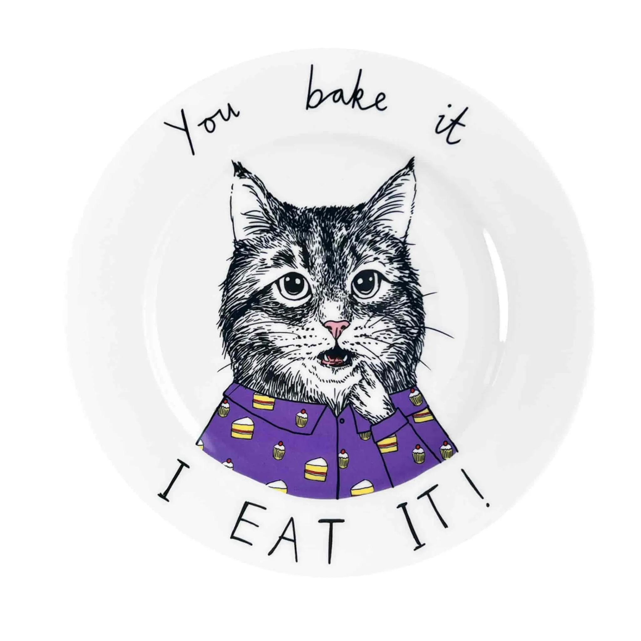 Use the “You Bake It I Eat It” side plate to serve up cakes, breads, biscuits or any other baked treats to your adoring friends and family.