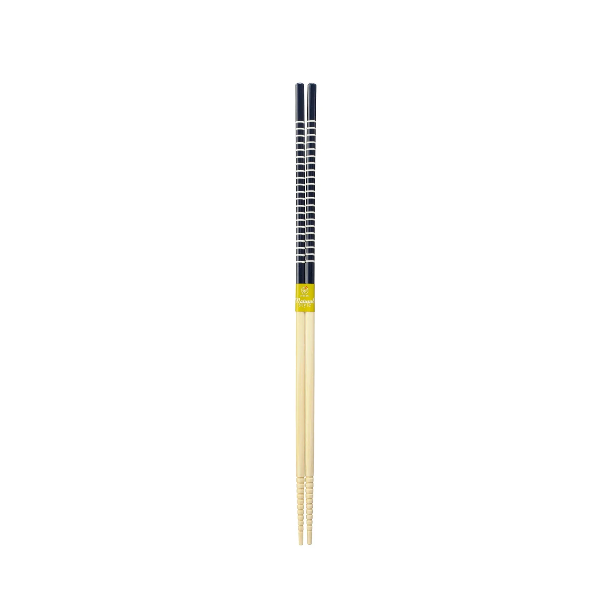 Use these blue stripe cooking chopsticks to prepare Japanese meals at home. They are longer than standard chopsticks, keeping your hands away from heat.