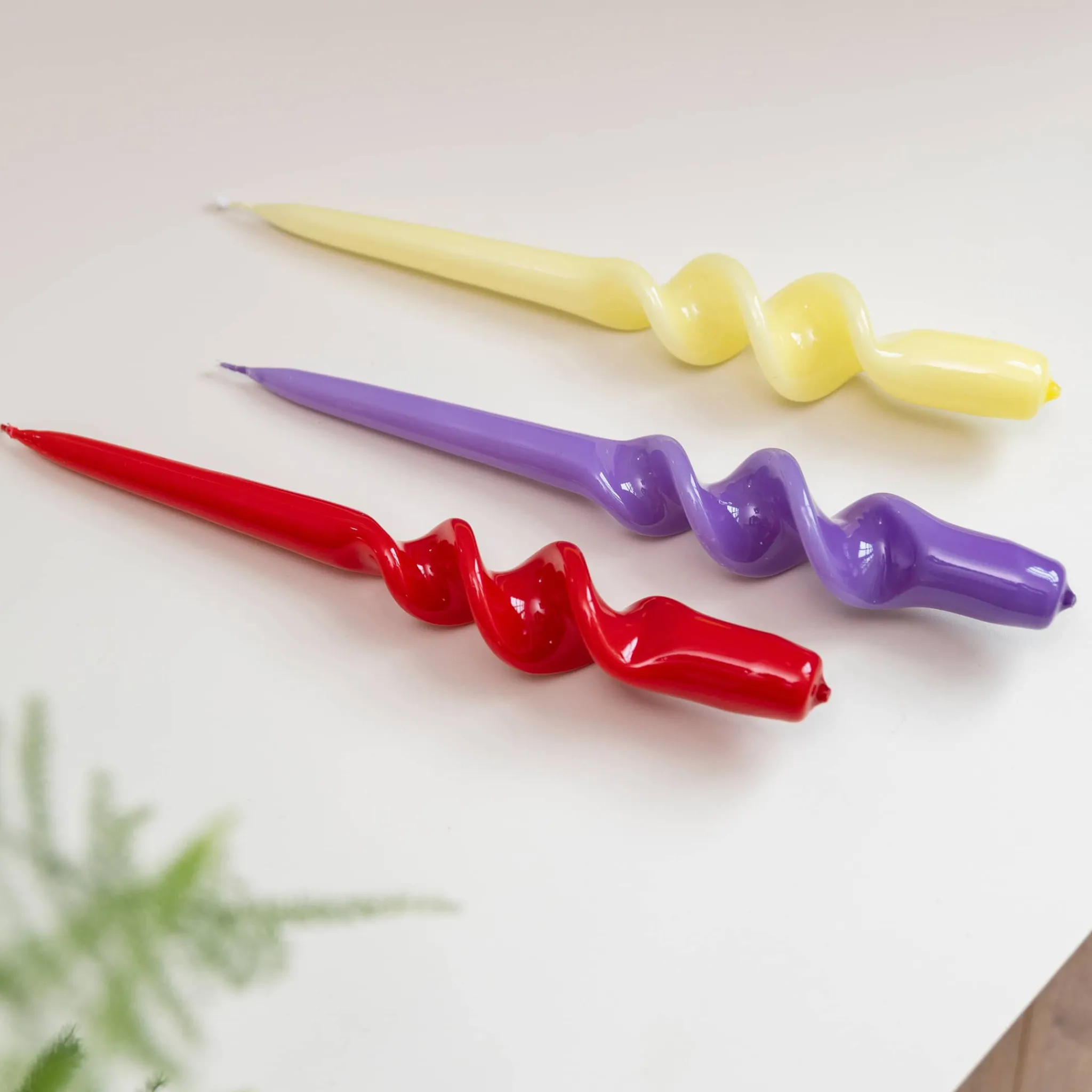These spiral candles cast a golden glow over your dinner table. Pair them with colourful crockery for a fun, contemporary look.