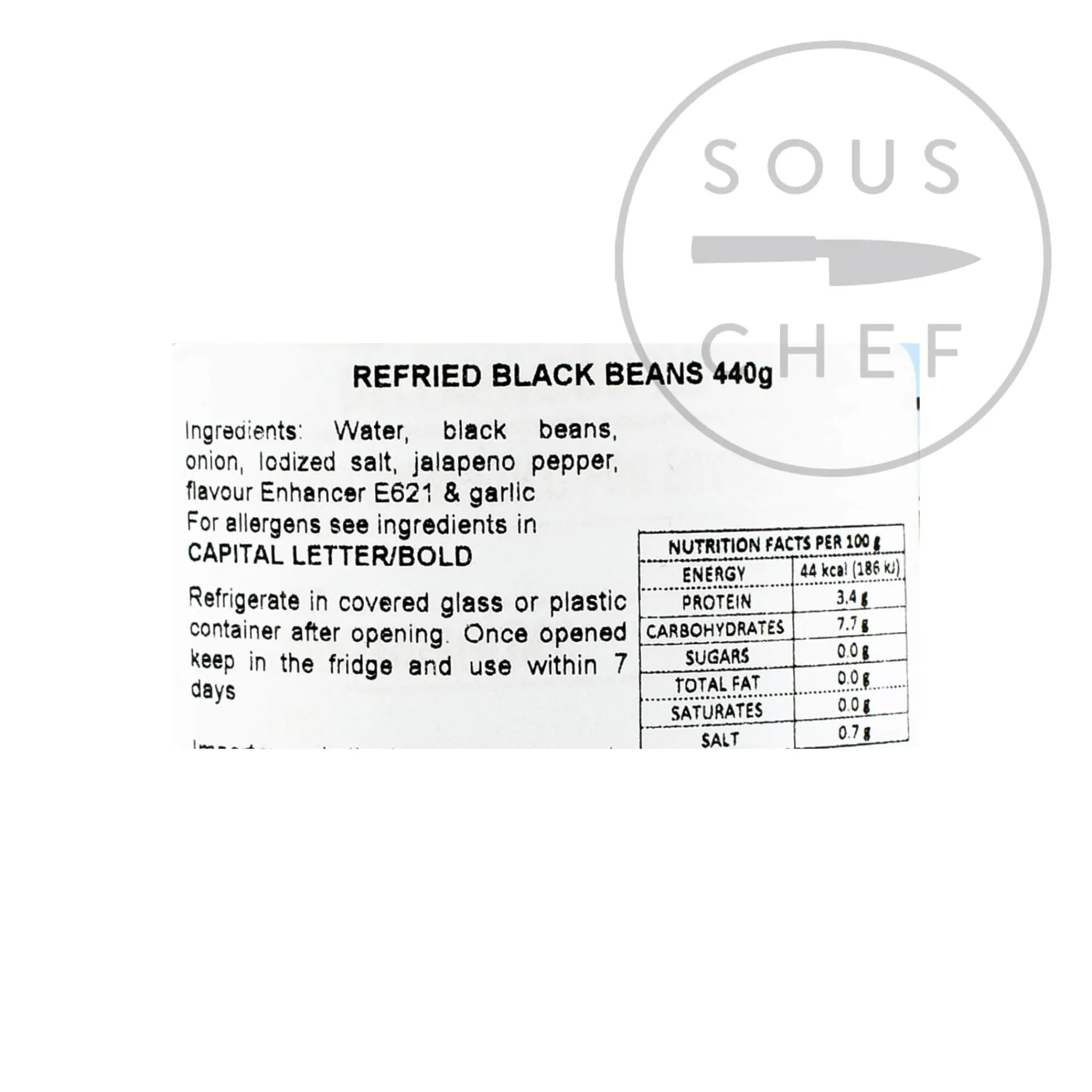 Product formulations and details may change. For the latest ingredients and allergen information always check product packaging prior to consumption. Ingredients: water, black beans, onions, iodised salt, jalapeno pepper, flavour enhancer E621 (monosodium glutamate) and garlic. Contains MSG.