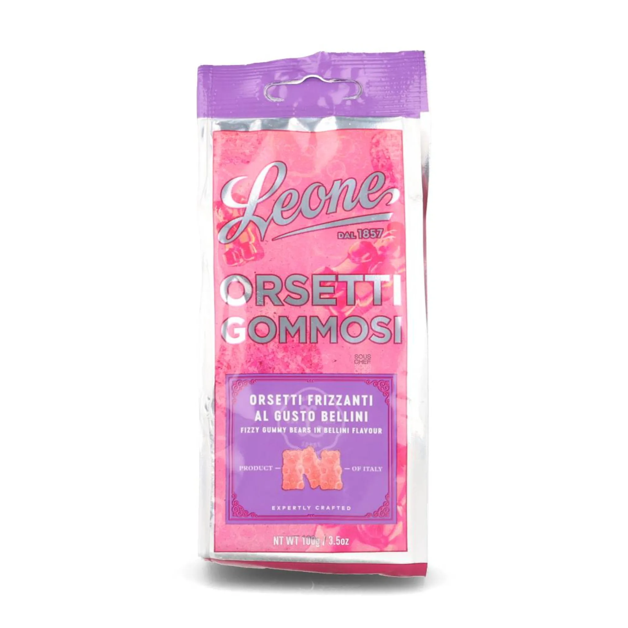 Leone gummy bears capture the fruity flavour of a peach Bellini. Invented in Venice in 1948, the cocktail combines prosecco with white peach purée. It has become one of Italy’s most popular pre-dinner tipples.