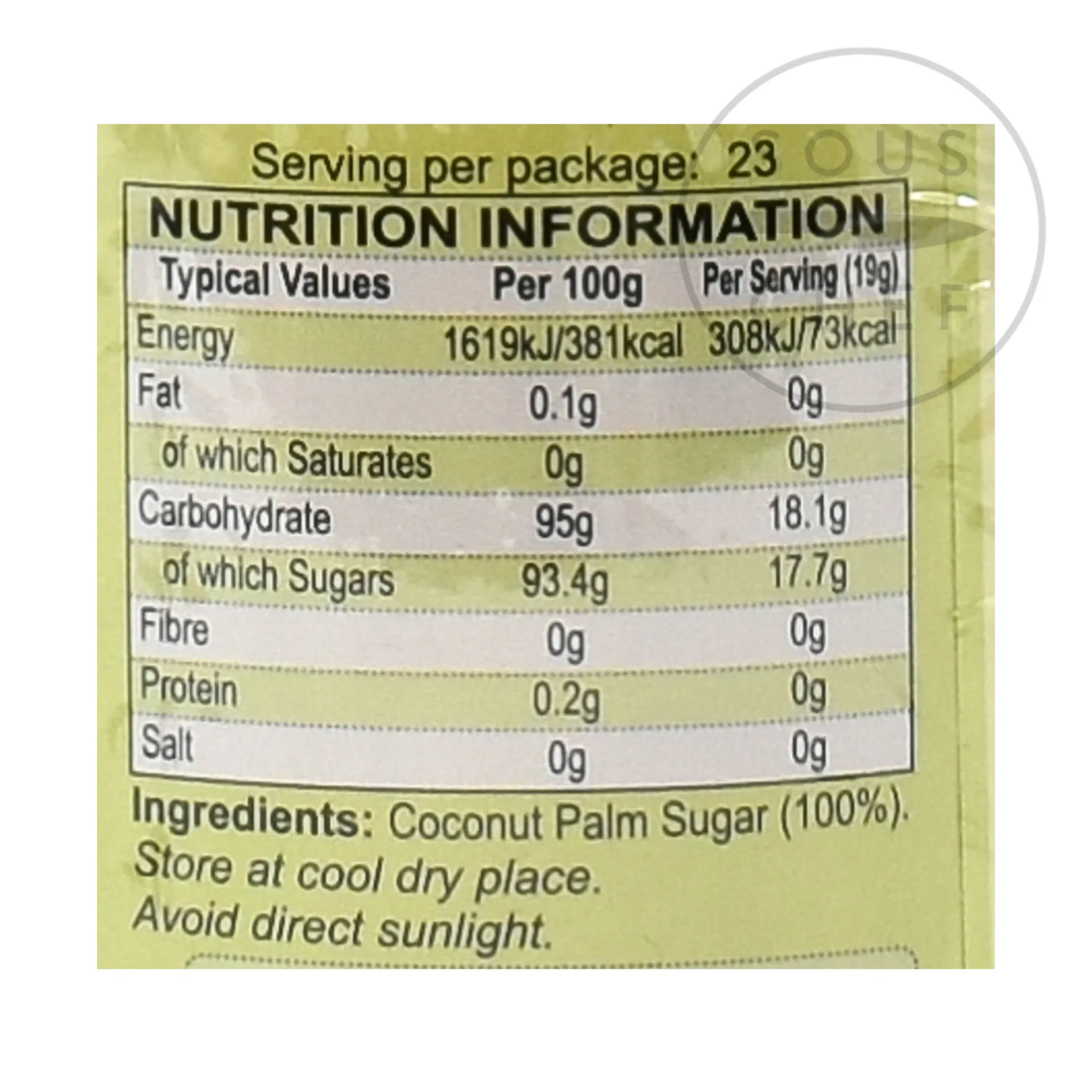 Product formulations and details may change. For the latest ingredients and allergen information always check product packaging prior to consumption. Ingredients: Coconut palm sugar (100%)