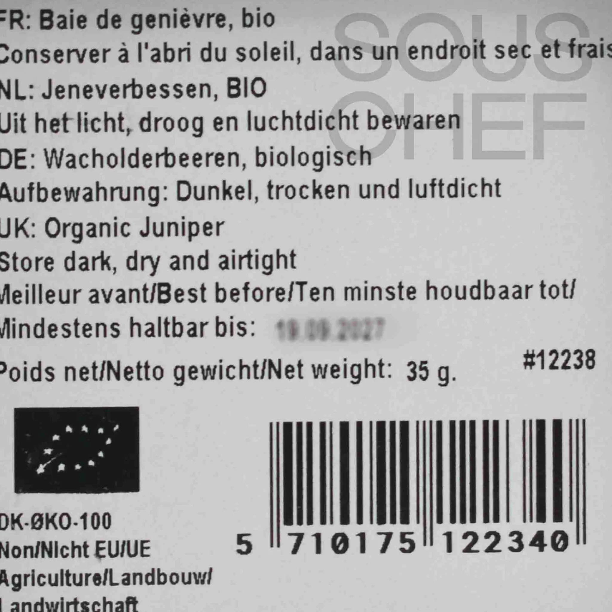 Product formulations and details may change. For the latest ingredients and allergen information always check product packaging prior to consumption. Ingredients: Juniper (whole), organic