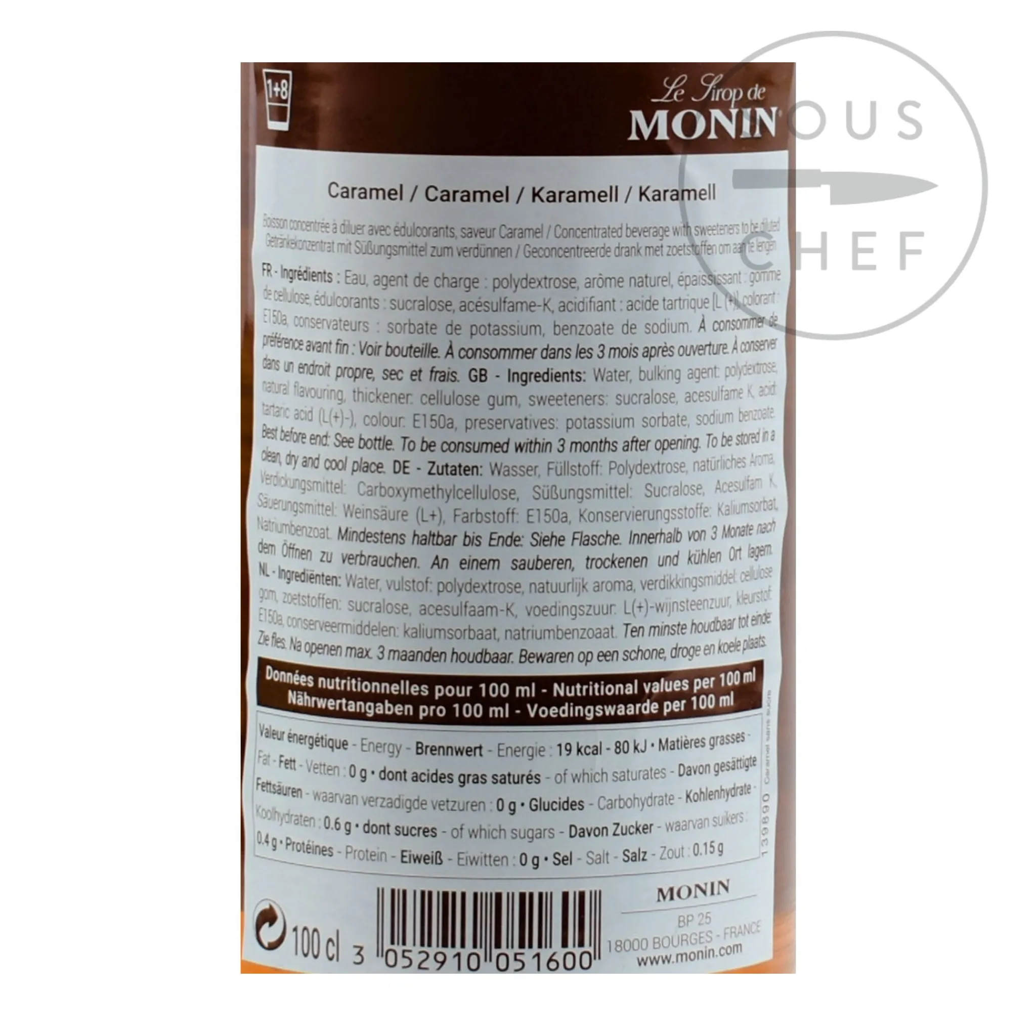 Monin sugar free caramel syrup is a great addition to your cocktail cabinet, or indeed for use in icings or jellies. It brings great caramel taste and sweetness, with no added sugar or calories.