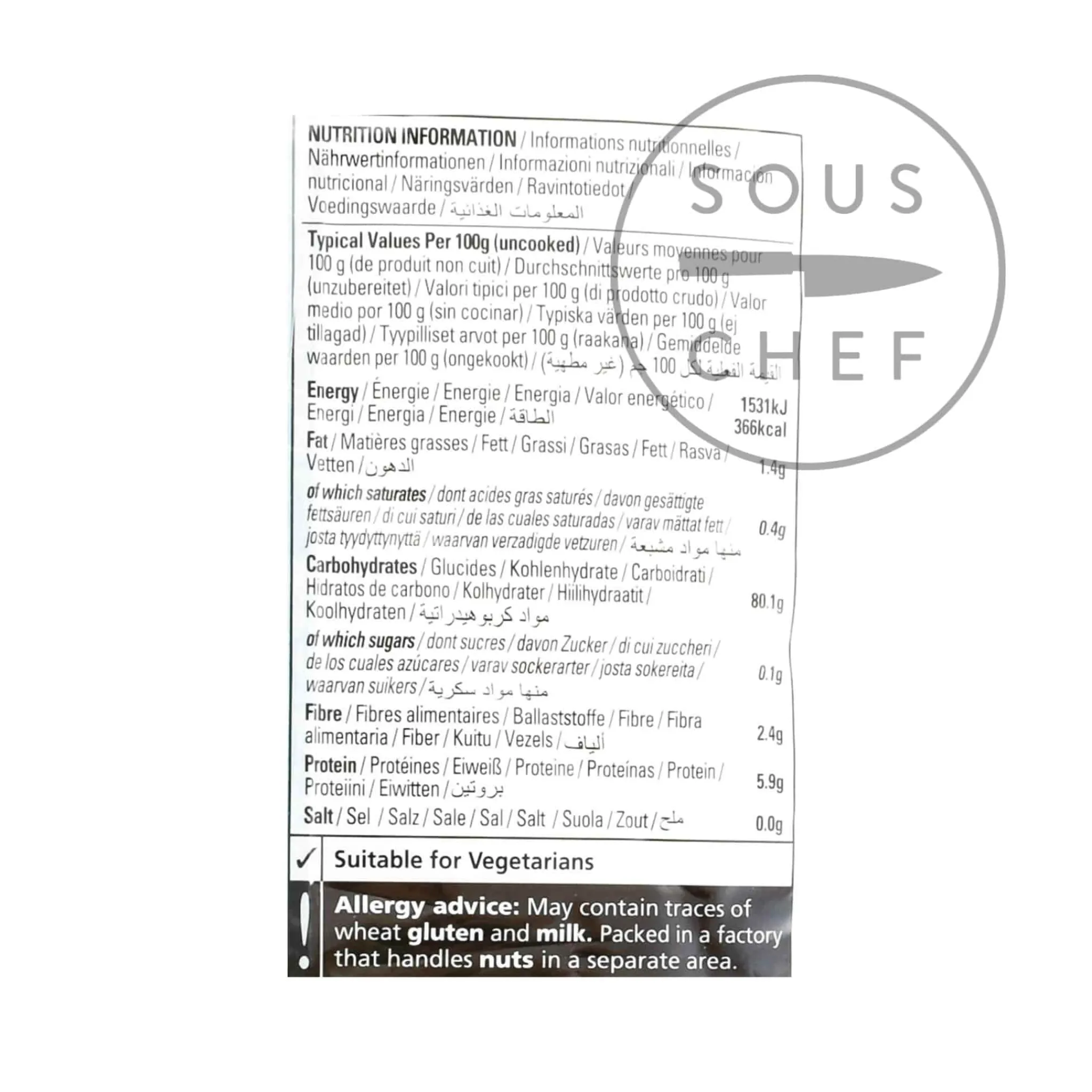 Allergy advice: May contain traces of wheat gluten and milk. Packed in a factory that handles nuts in a separate area.