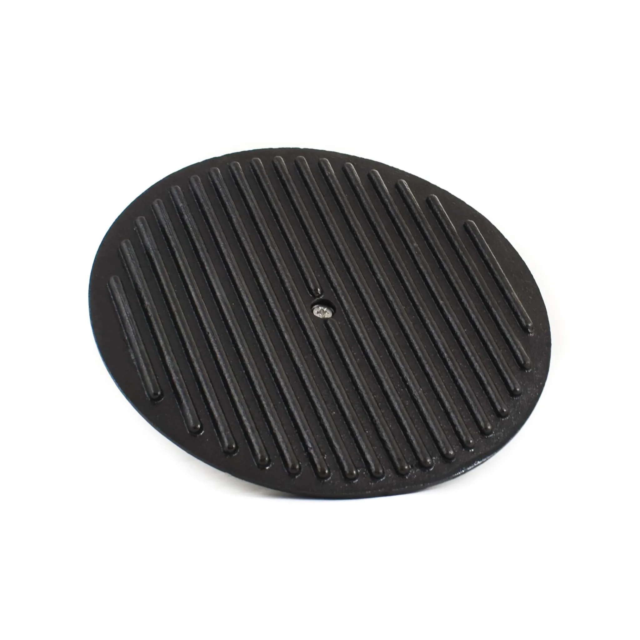The 4lb press is made from durable spun iron. It comes pre-seasoned and will build a non-stick patina over time. For best results, pre-heat before use.