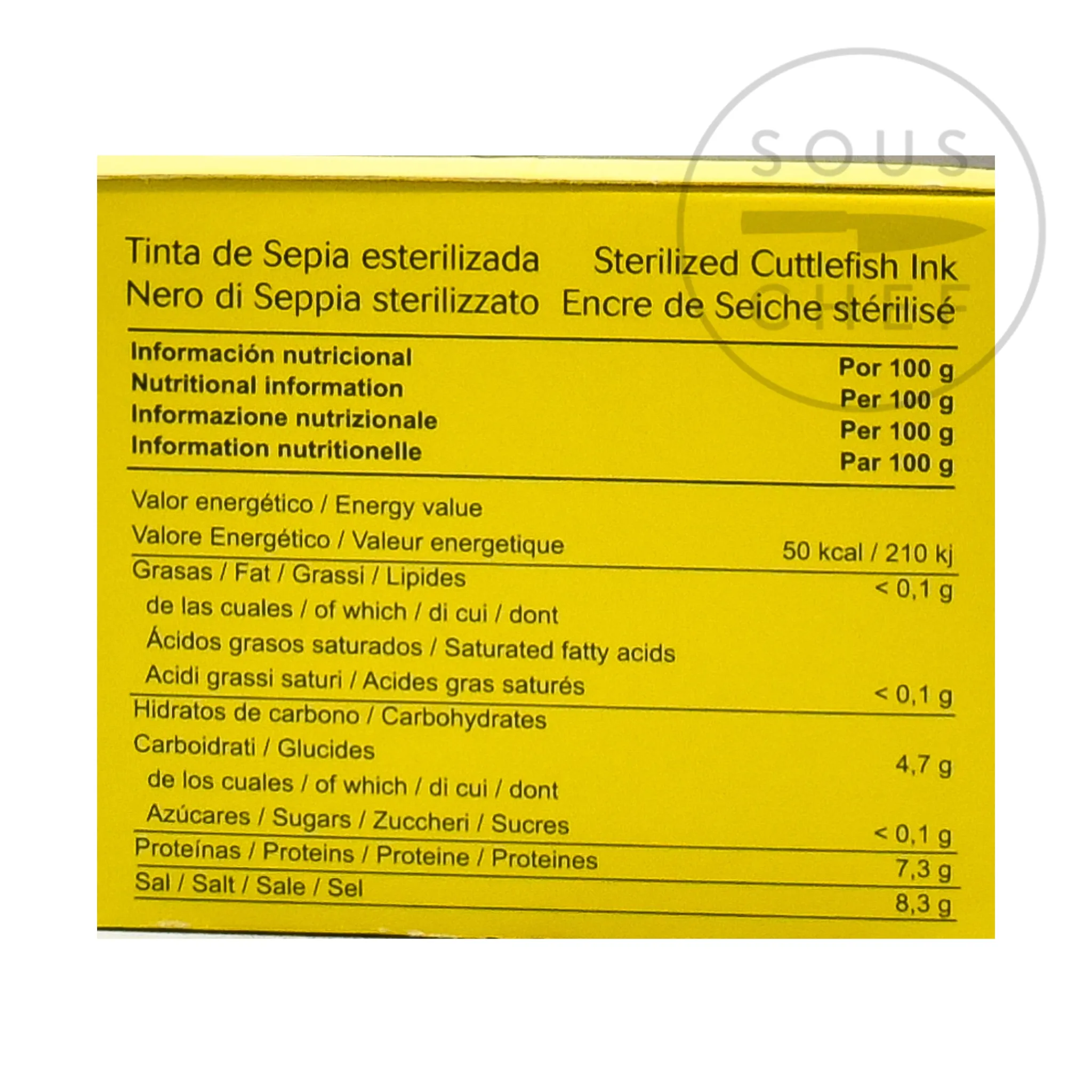 Product formulations and details may change. For the latest ingredients and allergen information always check product packaging prior to consumption. Ingredients: Cuttlefish ink, water, salt and thickener (E466). Contains molluscs, and may contain traces of crustaceans, fish & milk.