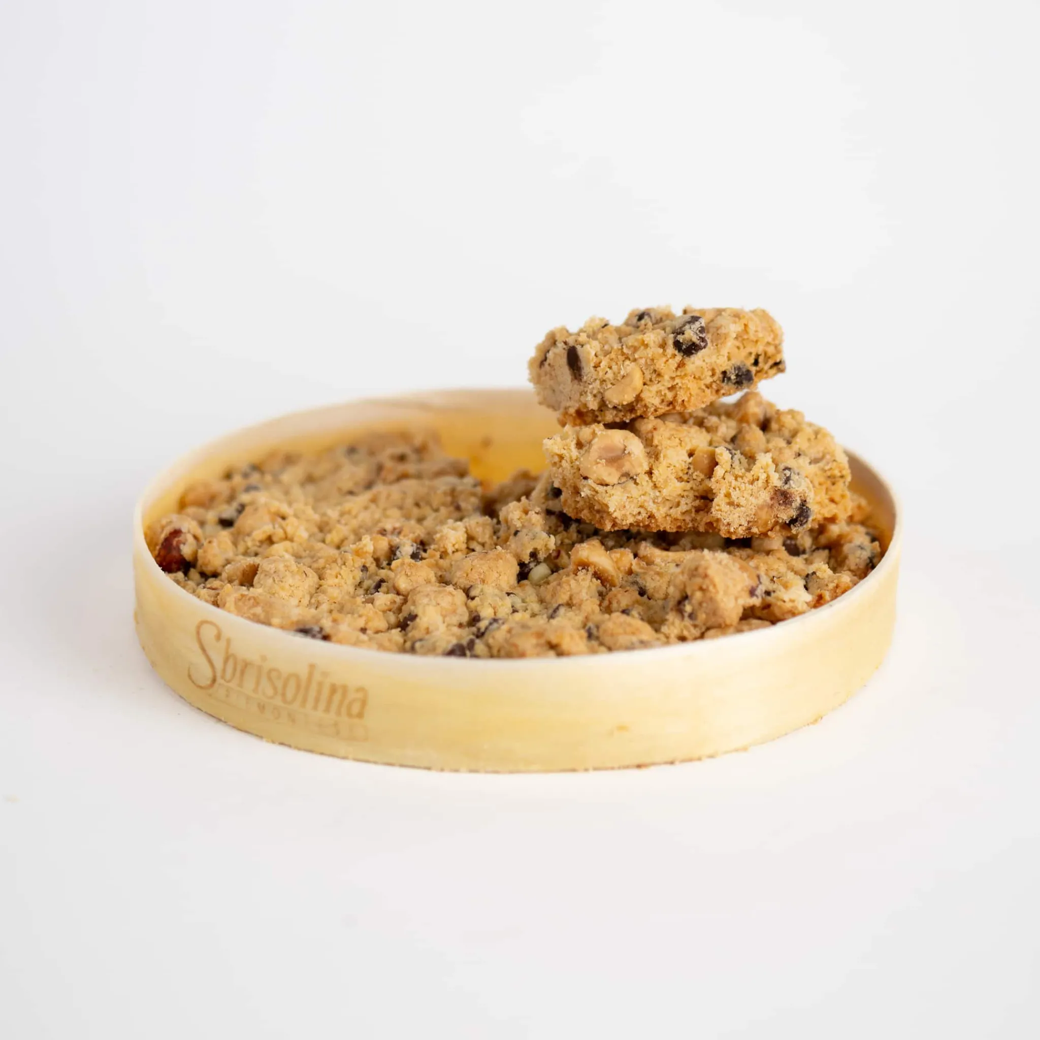 Pariani’s sbrisolina is the Piedmont version of the famous Mantova crunch cake sbrisolona. This version uses hazelnuts instead of almonds, and only the finest ‘Nocciola Piemonte PGI’ hazelnuts for a rich, slightly sweet flavour. This crunchy nut cake combines the hazelnuts with dark chocolate, a pinch of salt and a little lemon peel.