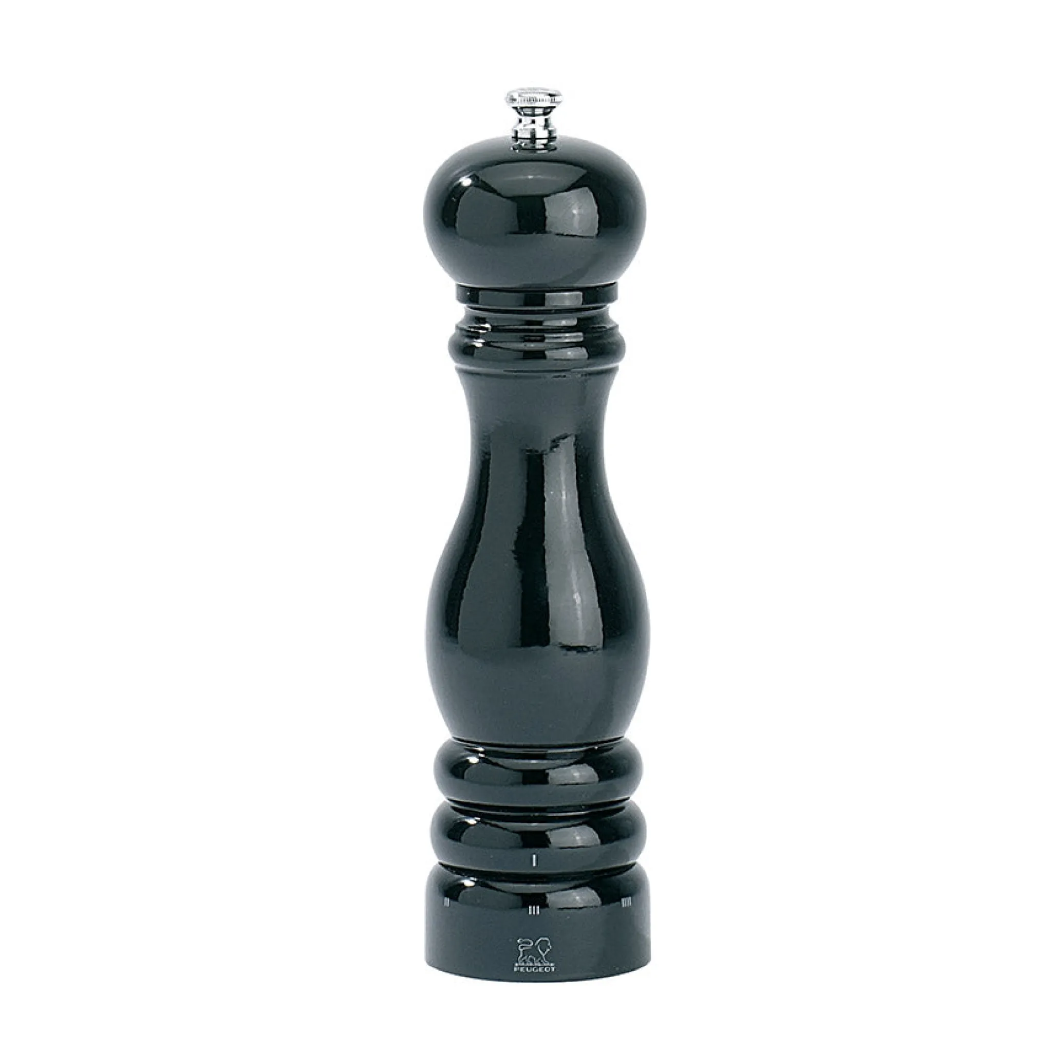 The Peugeot logo on top of the mill and the mechanism underneath will appear black to indicate that this is for pepper.
