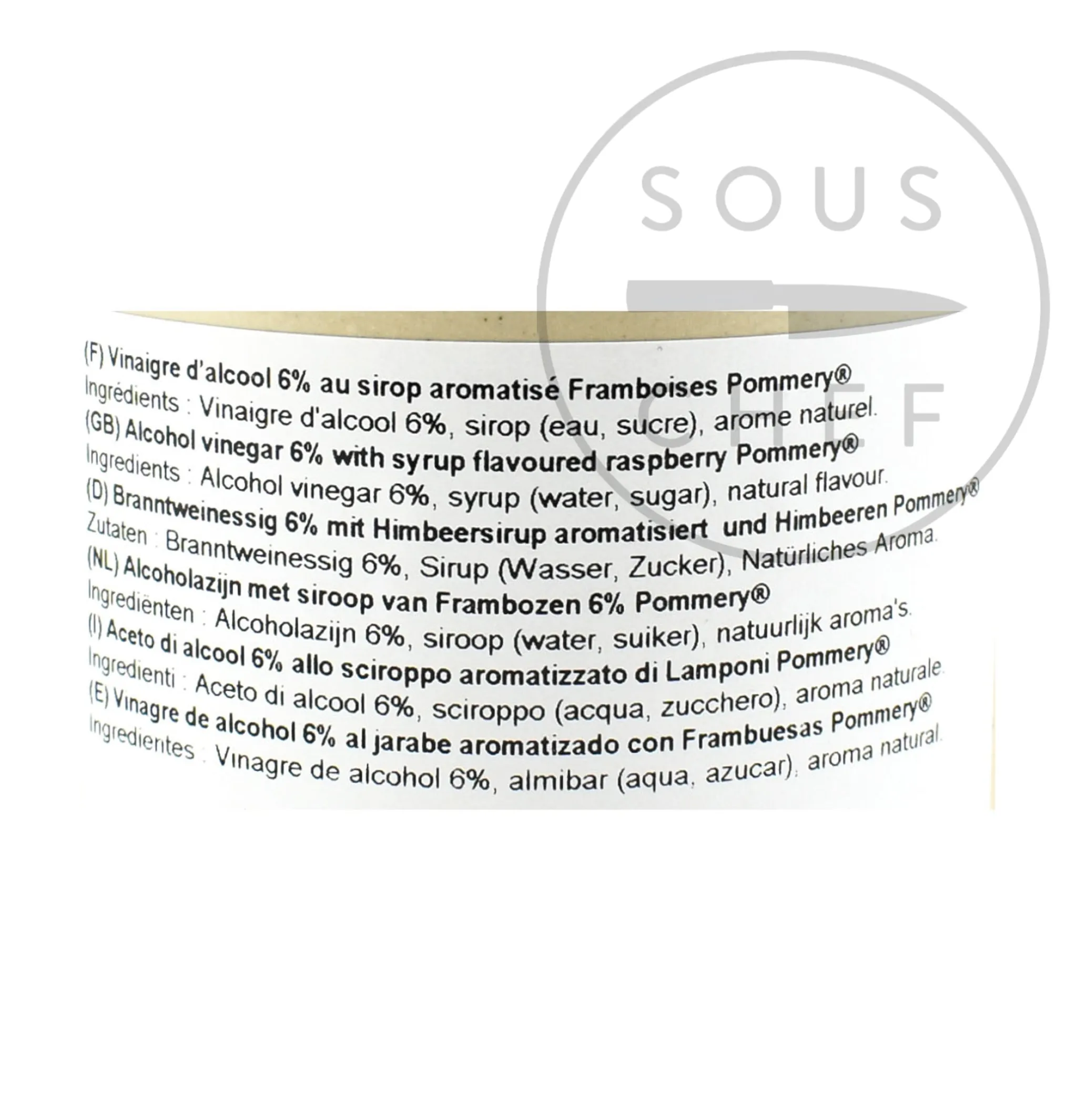 Pommery raspberry vinegar is a sweet, fruity vinegar that lifts fresh vegetable salads and creamy desserts. White alcohol vinegar is infused with a raspberry sugar syrup, creating a floral blend.