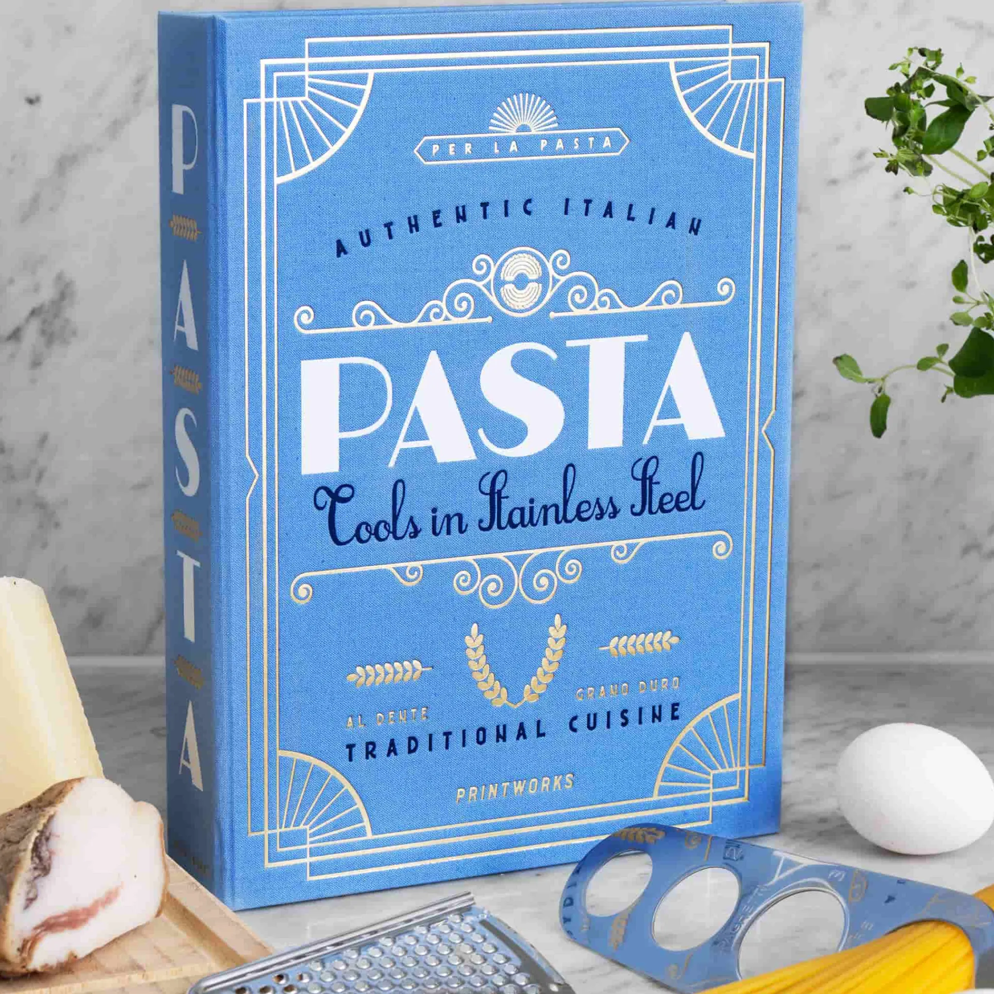 This pasta lover’s tool set is cleverly disguised as a recipe book. With elegant Art Deco details, the blue box looks fantastic on a shelf or bookcase.
