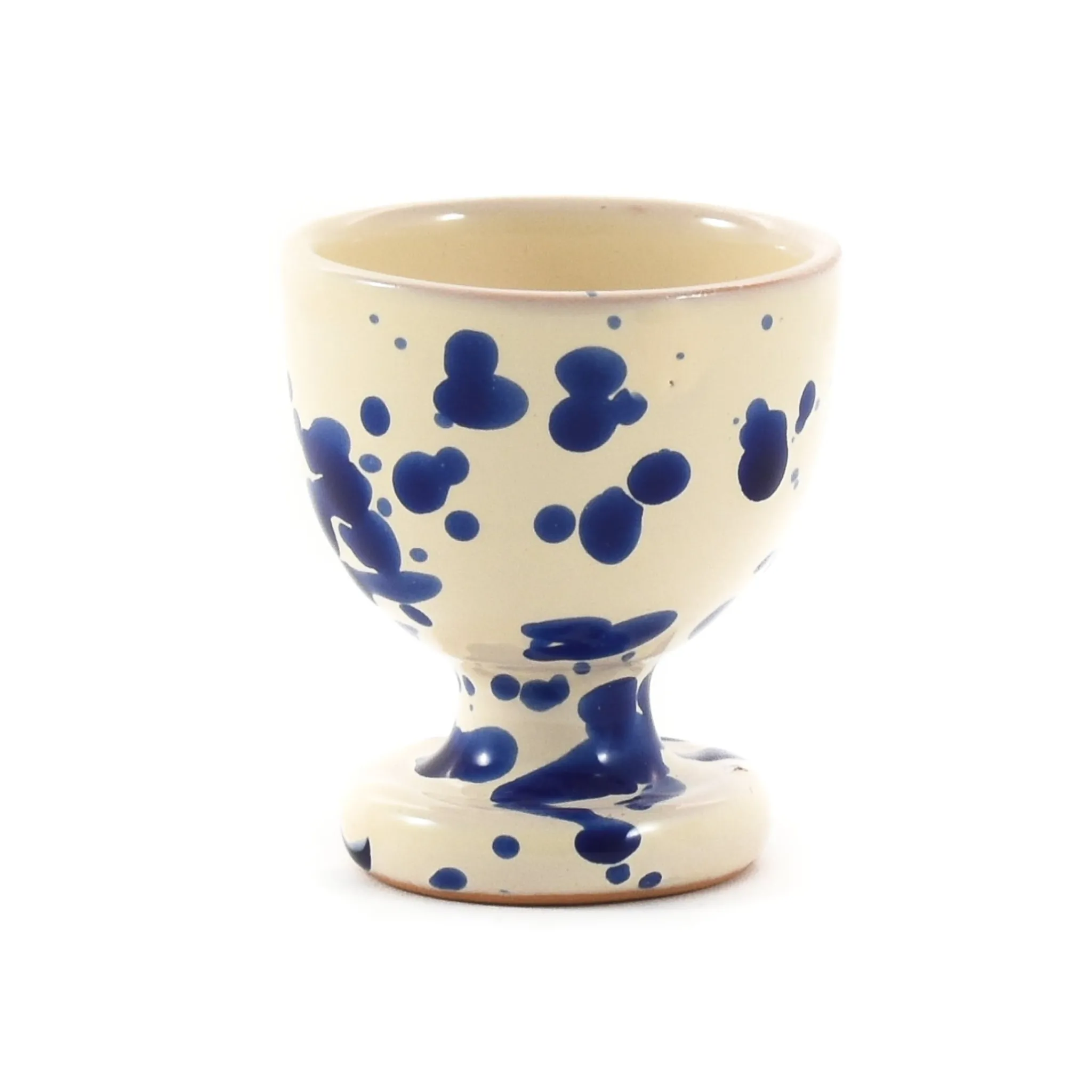 The Puglia egg cup in blue is sure to brighten breakfast time. The off-white ceramic egg cup is decorated with splatters of blue, giving a rustic vibe to the crockery.