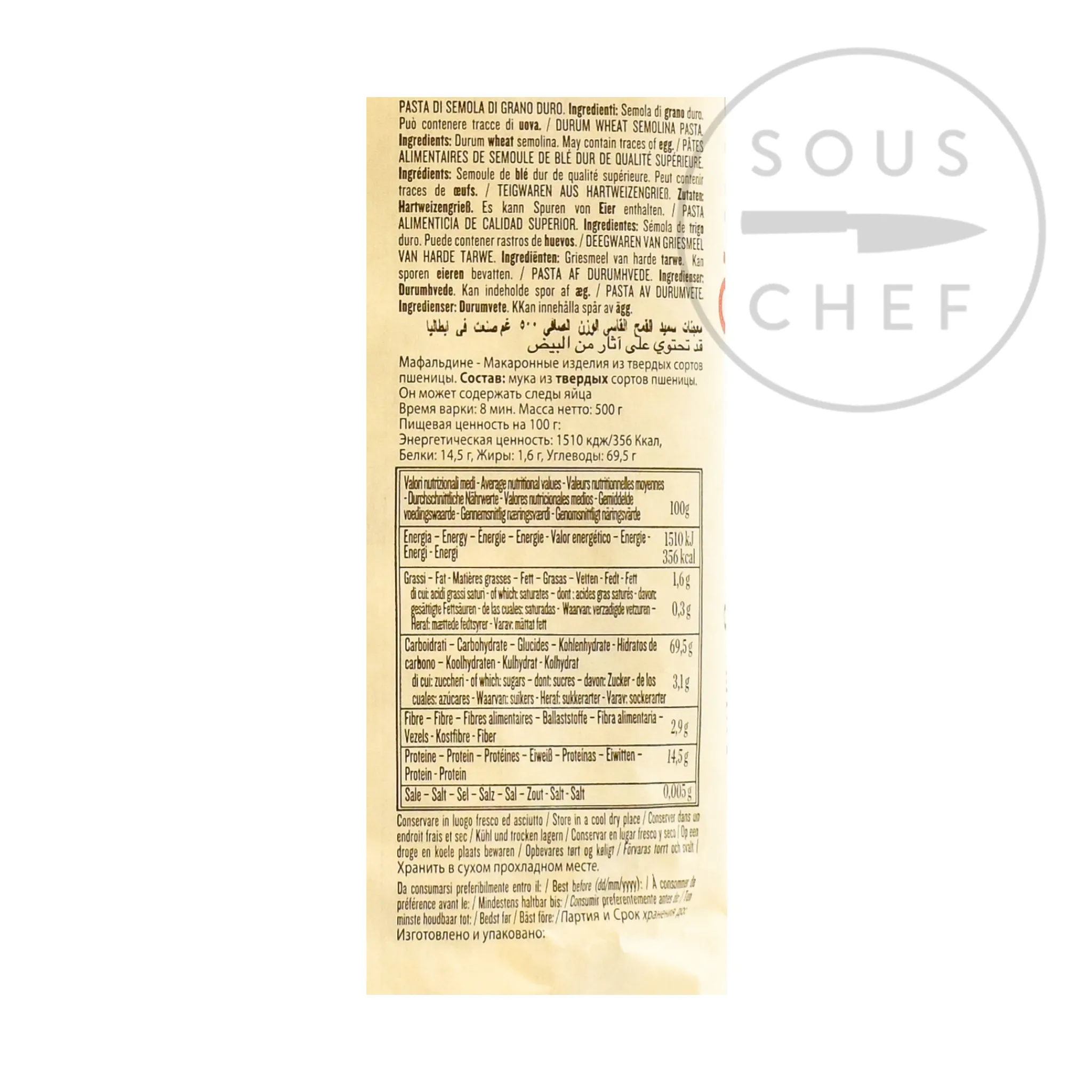 Rummo mafaldine pasta no. 80 is long wide strips of pasta with a frilly edge. Try the mafaldine pasta with a slow-braised rich ragu, or with pan-fried wild mushrooms and cream. Rummo mafaldine pasta cooks in 8 minutes. Before cooking the mafaldine pasta is 26cm long and 1.4cm wide.