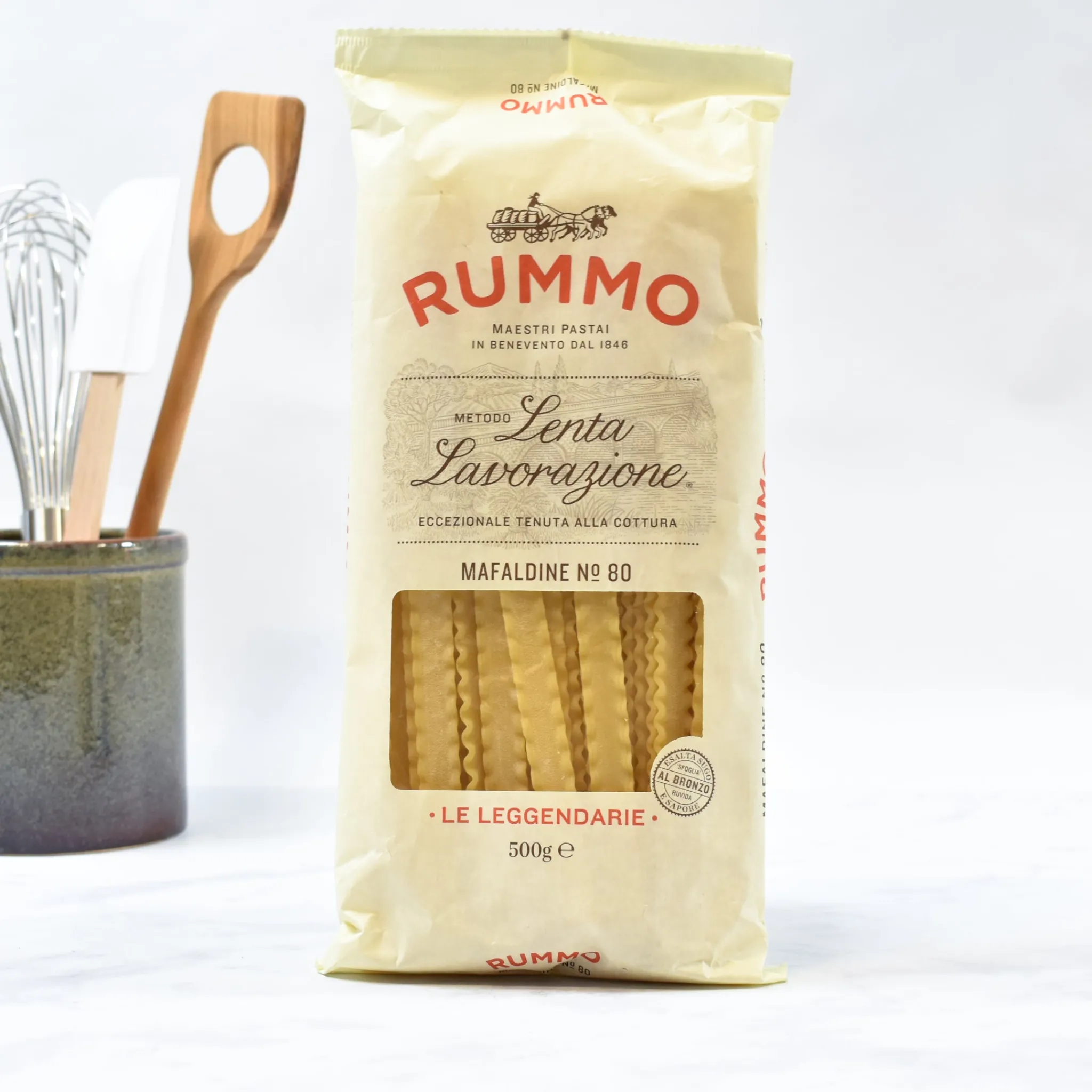 Today, each packet of Rummo pasta promises eccezionale tenuta all cottura—“exceptionally firm when cooked”. Whether the pasta cooks for 5 minutes too long in the pan, or it waits in sauce for 20 minutes whilst everyone comes to the table, you will have perfect pasta every time.