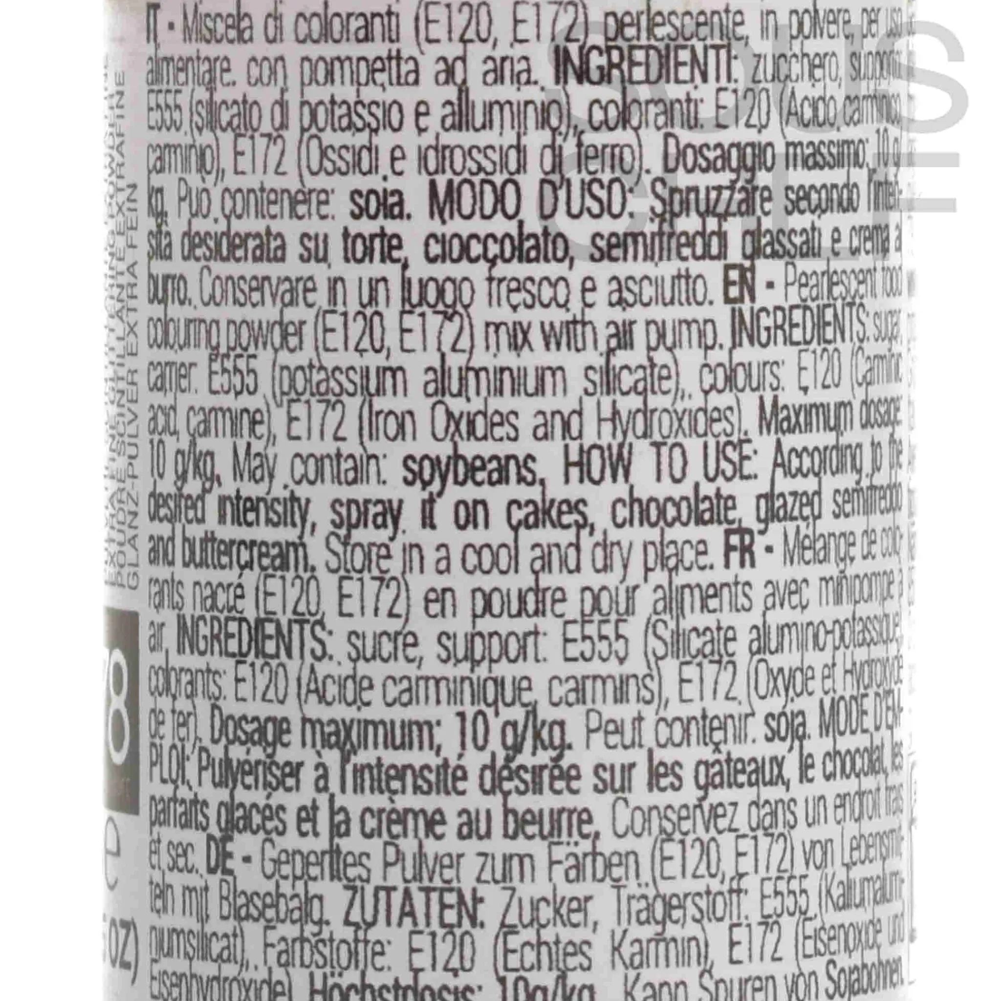 This glitter spray is suitable for domestic and professional kitchens. Use it to add a pearlescent effect to cupcakes, semifreddo and royal icing.